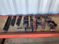 (1) caulking and adhesive gun, (3) drills, (1) hammer drill handle & (3) nail gun cartridges