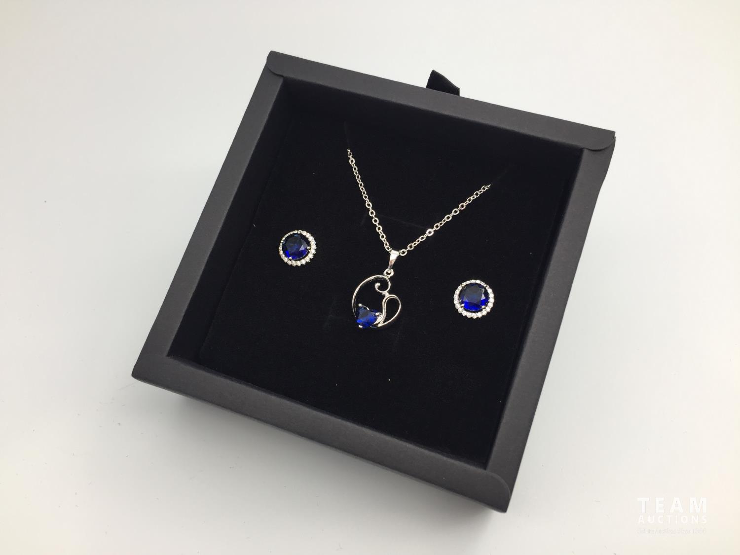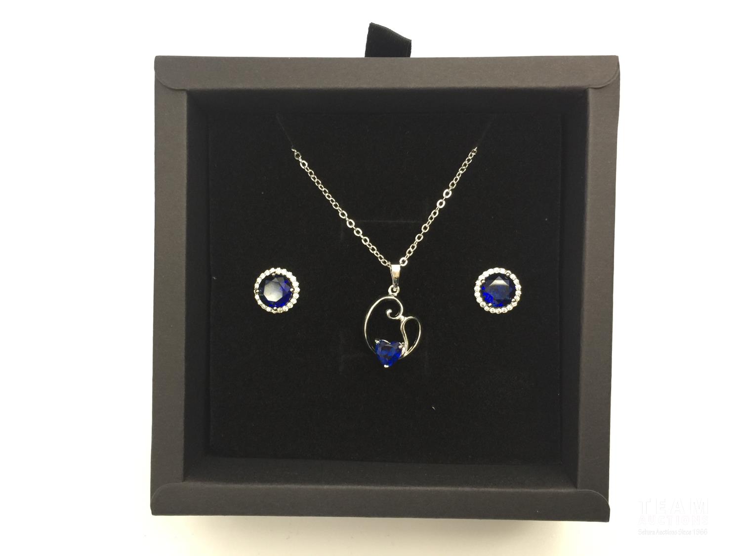 1063 Platinum Plated Blue Sapphire 2 Piece Jewellery Set (Unused)