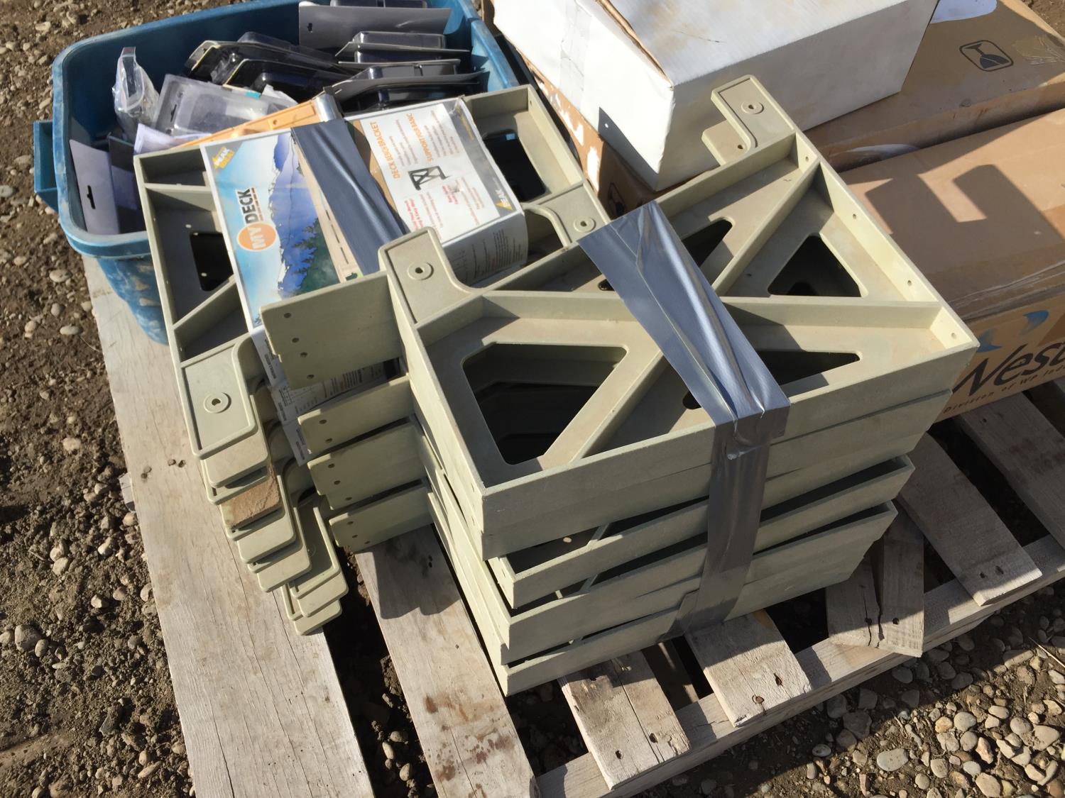 deck bench brackets, deck post base plate covers, pedestal sink, light fixture