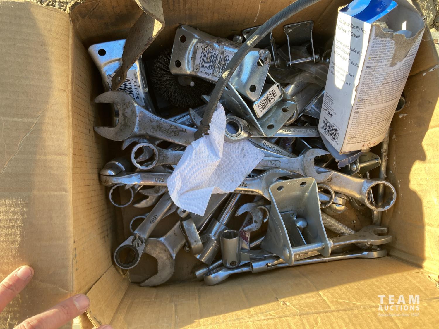 Quantity of screwdrivers, quantity of box end wrenches, set of Irwin groove auger bits, new hand winch, quantity of nuts and bolts