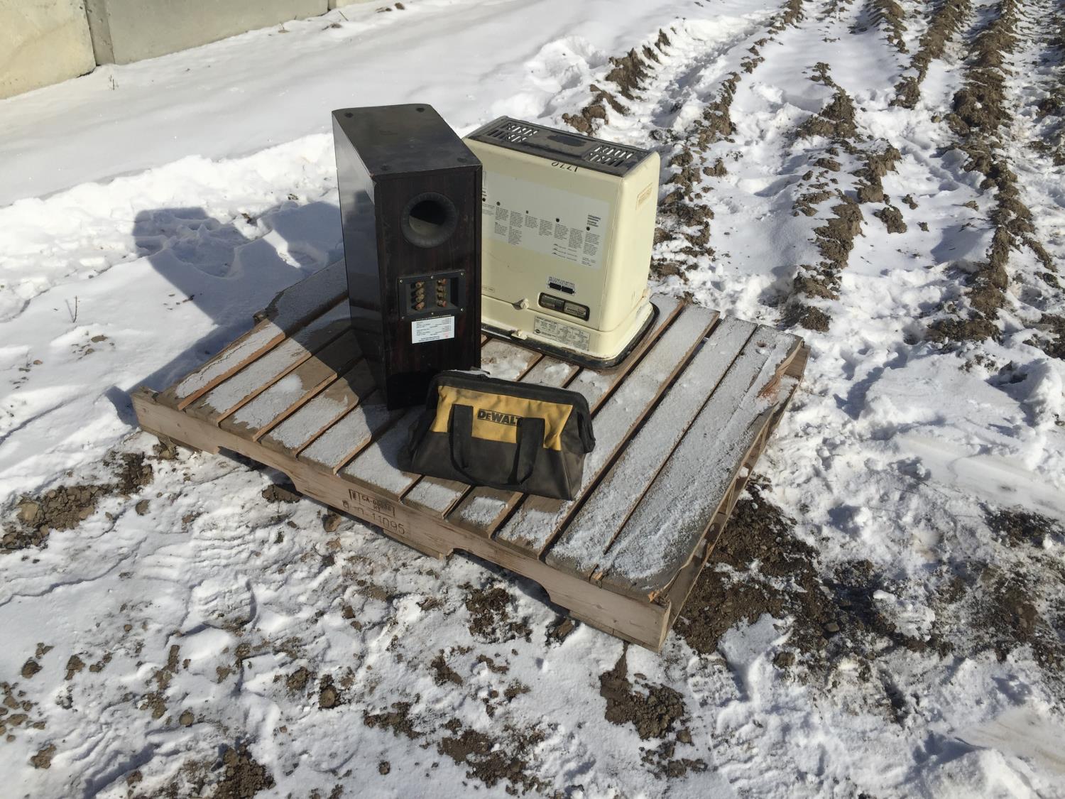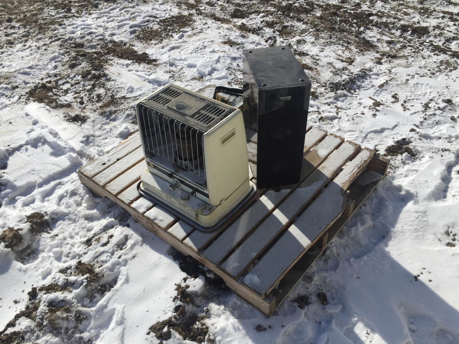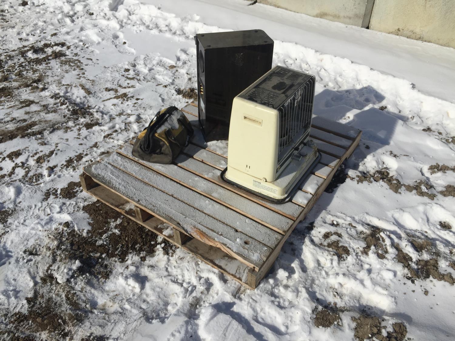 Portable Kerosene Heater, Divinci Speaker, Dewalt Tool Bag, Power Drill