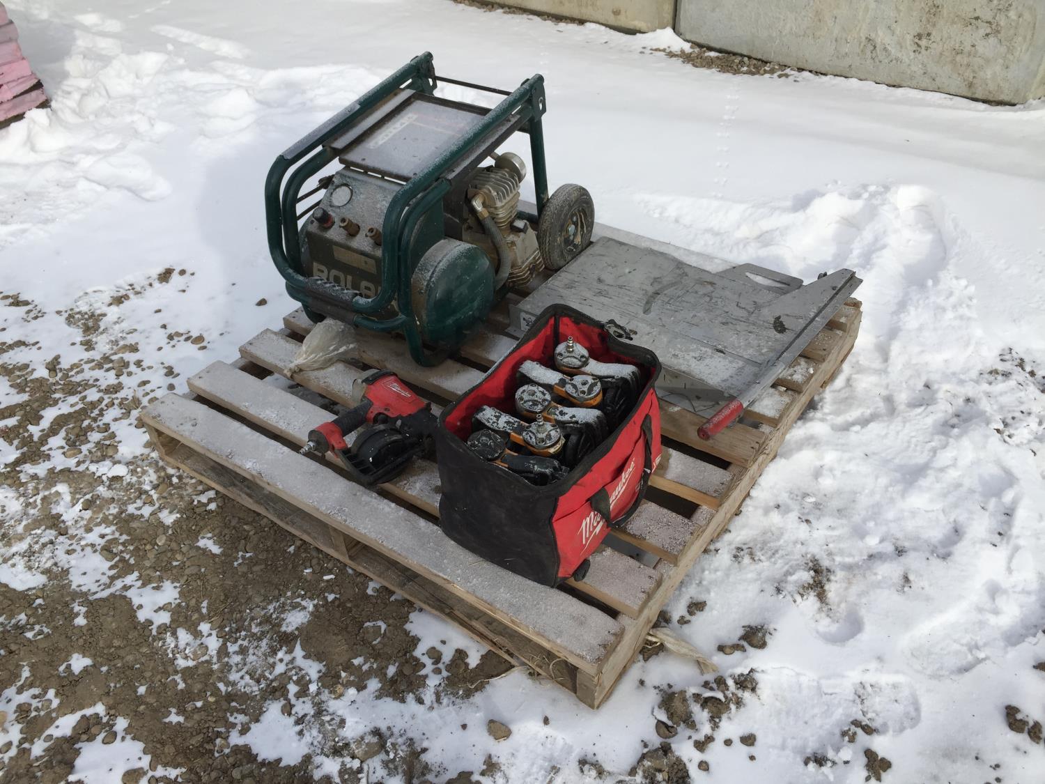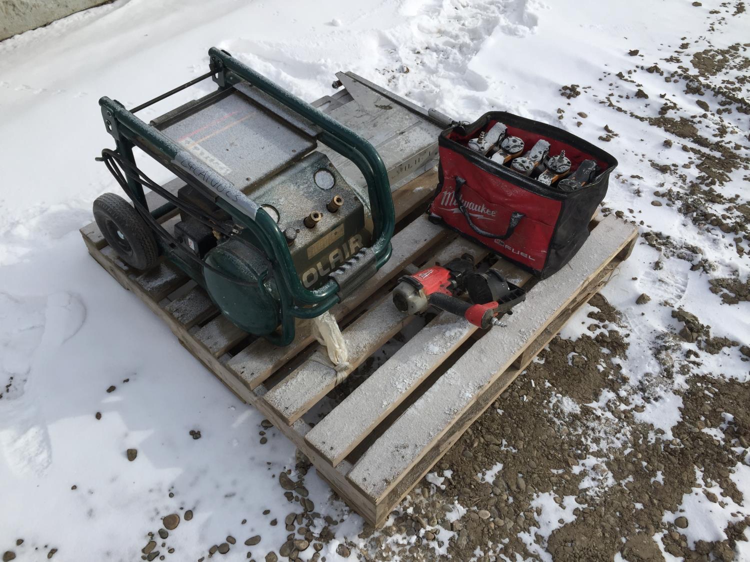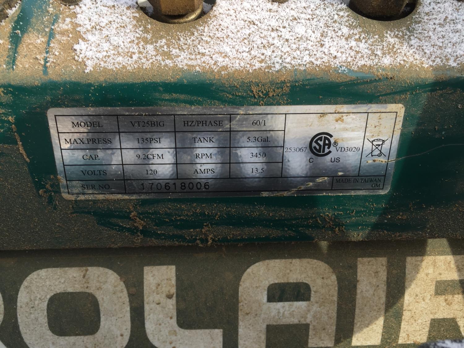 120 V, 60 Hz, single phase, 135 PSI, 5.3 gallon. , shingle cutter, roofing nail guns