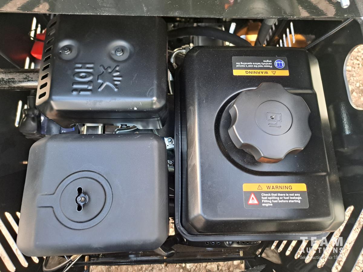 420 cc gas engine, 12 inch digging bucket, fixed thumb, 2 ft 8inch stick, auxiliary hydraulics, 28 inch backfill blade, 6 inch wide tracks, 44 inches track length, canopy, LED light, battery disconnect, hydraulic oil gauge, electric start with battery included, pull start option, joy sticks, hrs meter, 731 kg weight