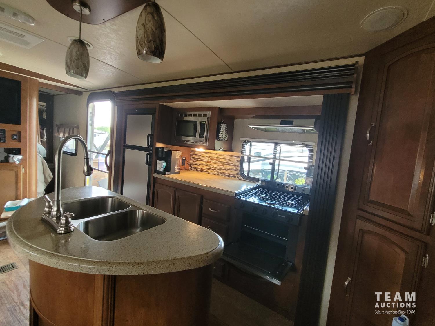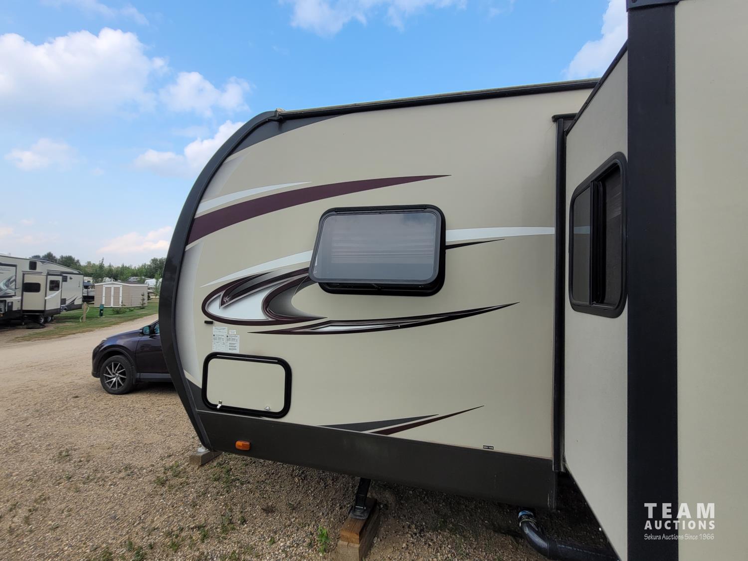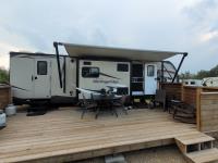 28 Ft. Interior Length, 2 entry doors, 19 ft. Awning, (2) Slide outs, AC, full kitchen, fridge, stove, microwave, island/sink, full bathroom, 6805 lb. dry weight, sleeps 10, 225/75R15 tires