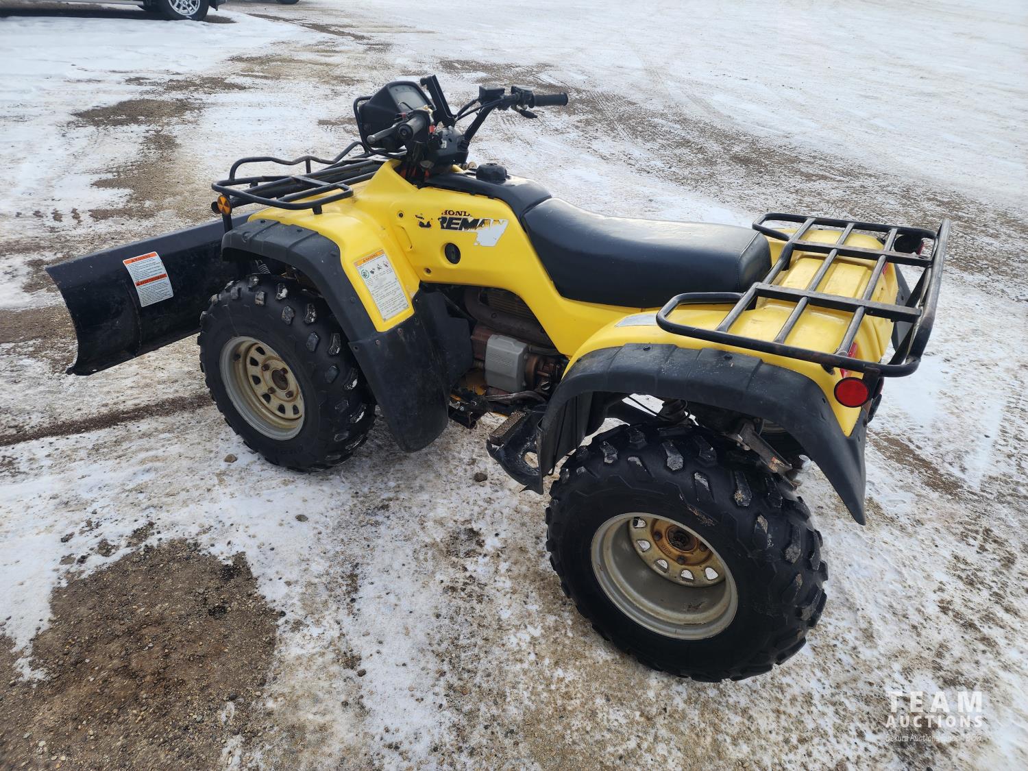 Honda 450 cc engine, standard transmission, electric start, 5 ft blade, front and rear racks, ball hitch, AT25x8-12 front tires, AT25x10-12 rear tires