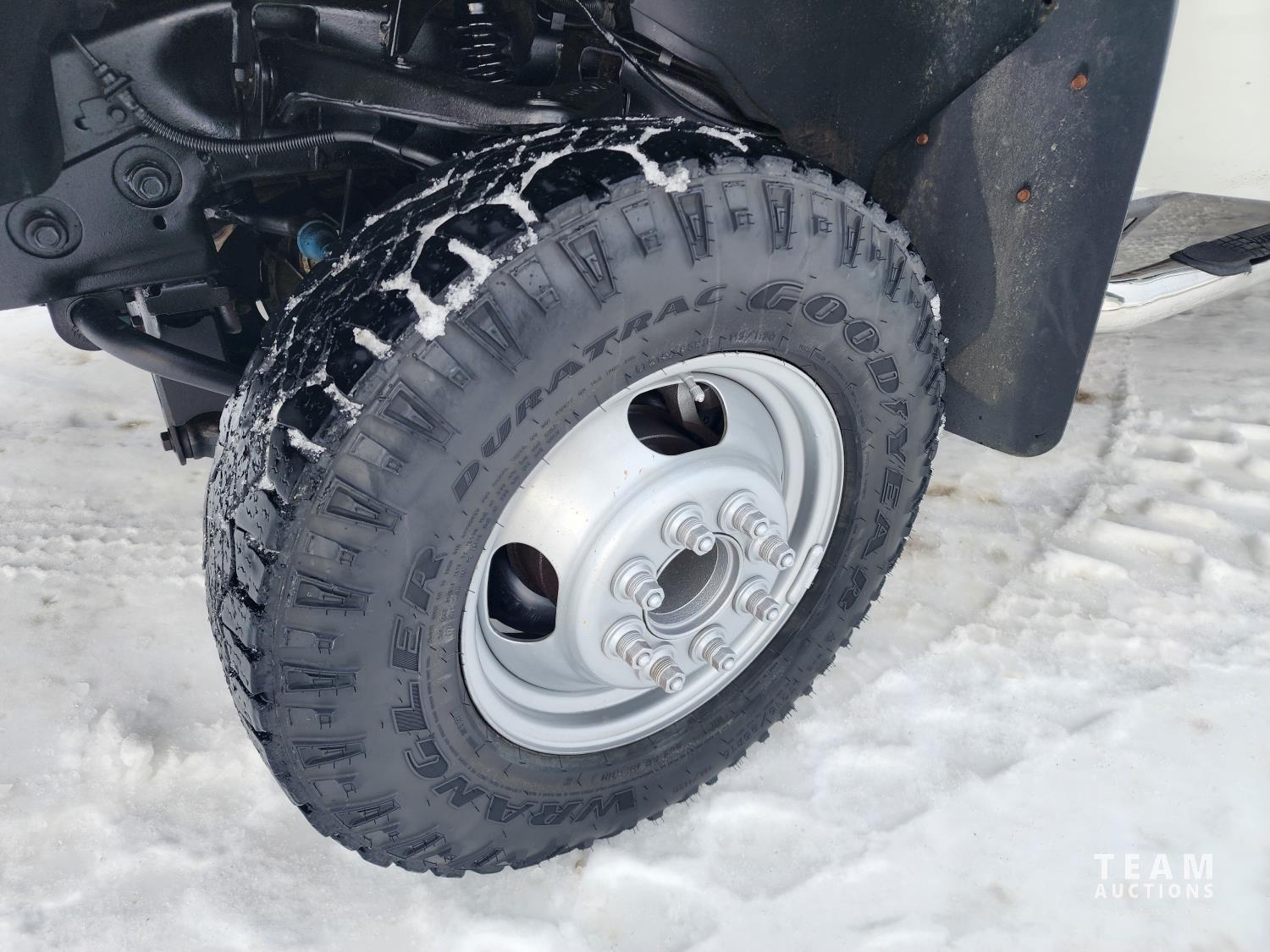 6.6 L, V8, diesel, automatic transmission, P/W, P/L, A/C, running boards, steel headache rack, steel tool boxes, 135 gallon fuel tank, 107 inch long x 90 inch wide deck, 5th wheel hitch, moose bumper, 215/85R16 tires