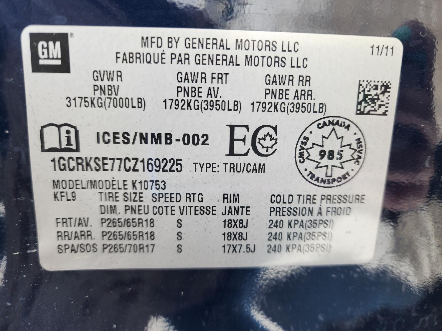 - 1GCRKSE77CZ169225