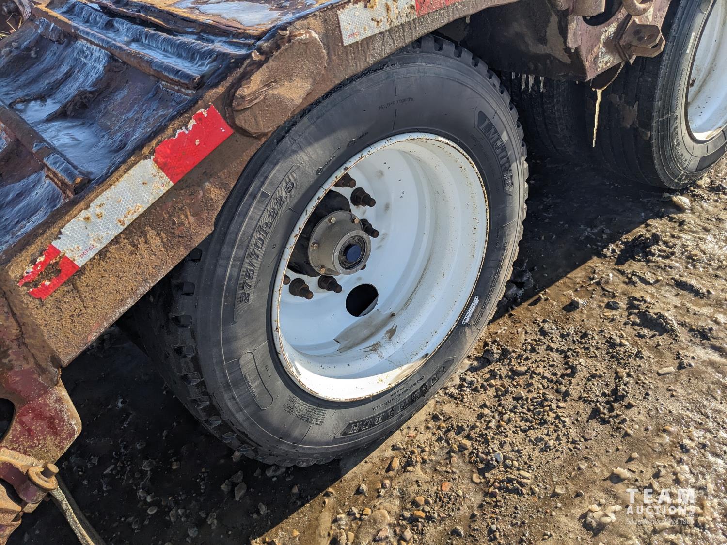 8 ft x 10 ft top deck, 38 ft x 8 ft main deck, air operated center roll, flip up rear live roll, air scale, air ride suspension, wood and metal deck, cargo winches, wide load marker lights, 275/70R22.5 tires