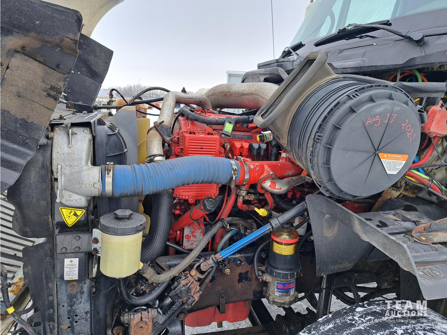 Cummins ISX450ST 15 L Inline 6-Cylinder 450 HP diesel engine, DEF deleted, engine heater, engine brake, engine block heater, Eaton Fuller 10 speed manual transmission, A/C, cruise control, air ride seats, radio, aluminum tool boxes, air ride cab, air ride suspension, 12,350 lb front axle, 20,000 lb rear axles, diff lock, 175 inch WB, 11R22.5 front tires, 11R22.5 rear tires