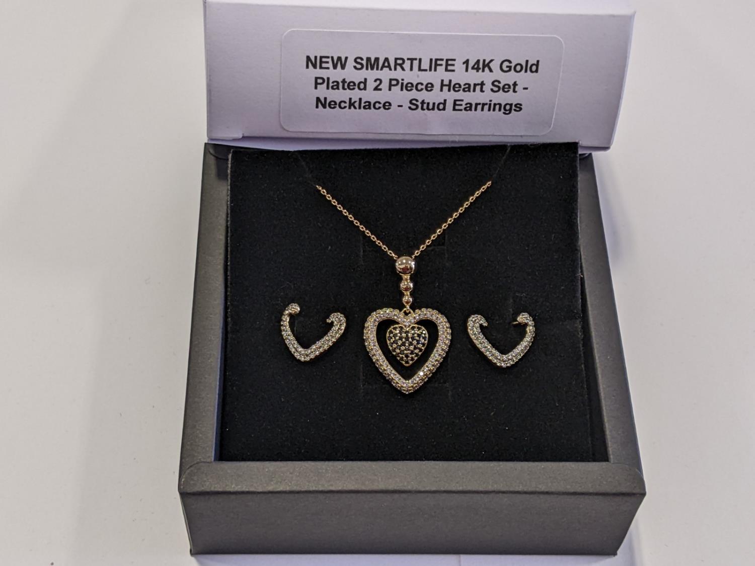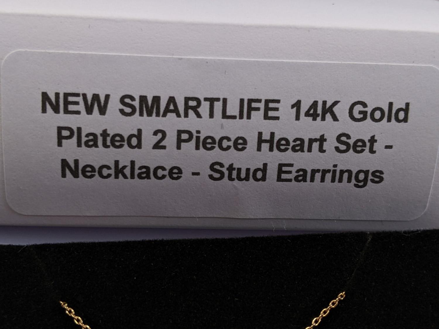 5112 SMARTLIFE 14K Gold Plated Heart Necklace and Stud Earrings (Unused)