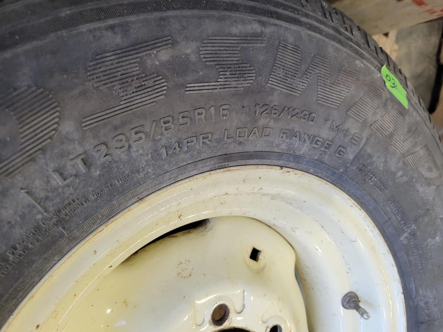 (1) 235/85R16 tire, (1) 11L-15 tire