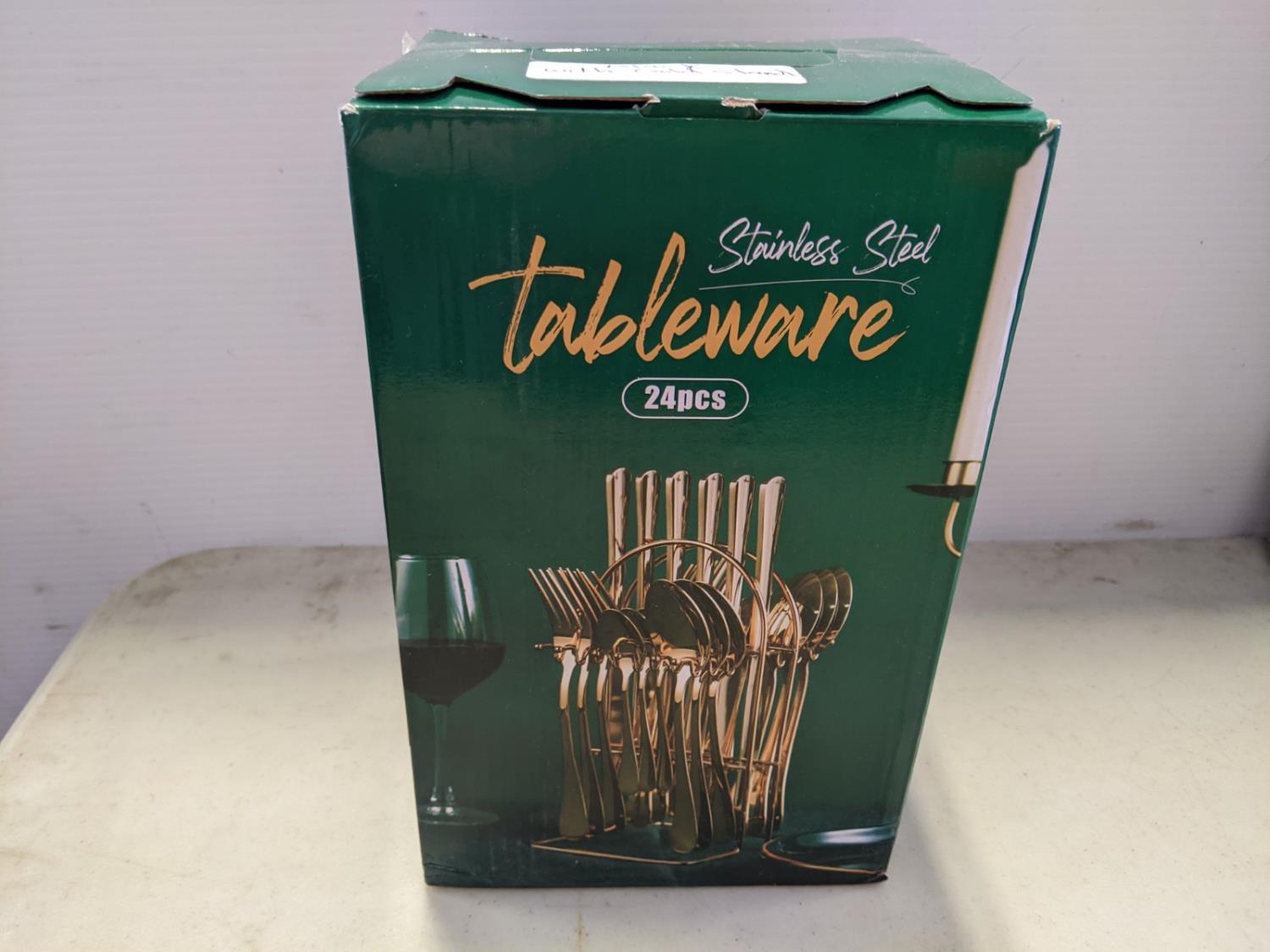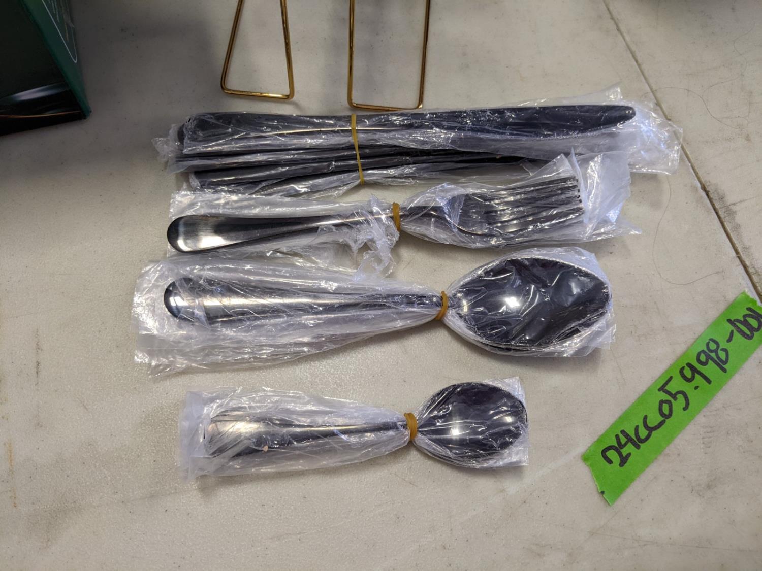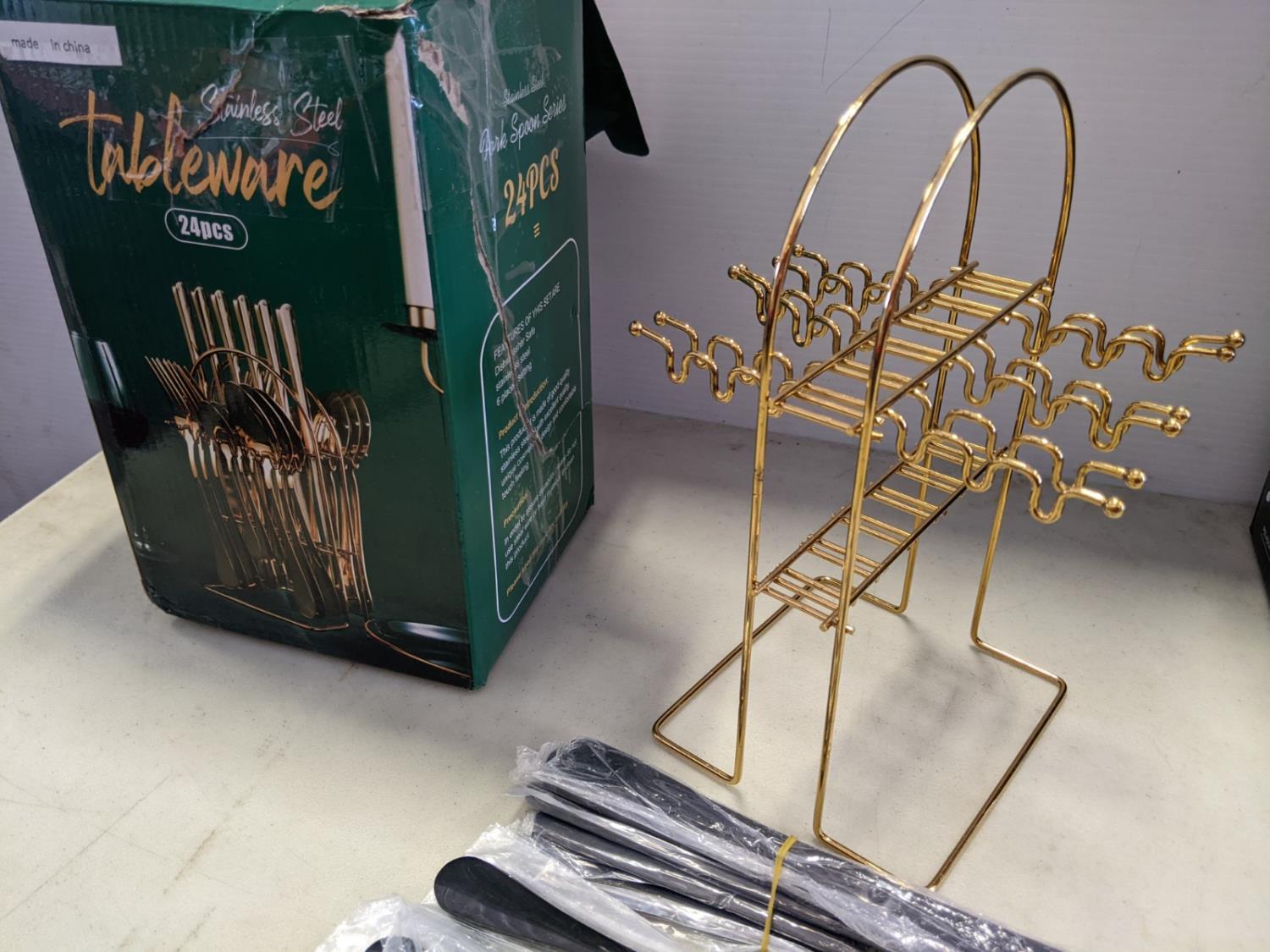 5098 24 Piece Black Flatware Set with Rack (Unused)