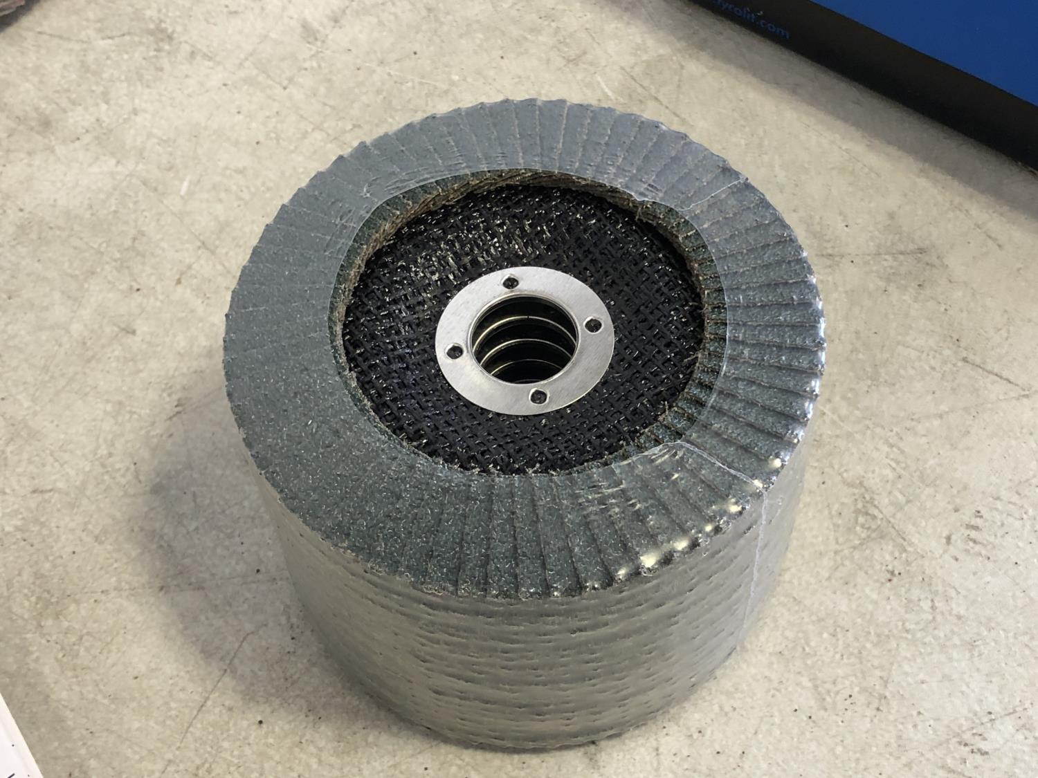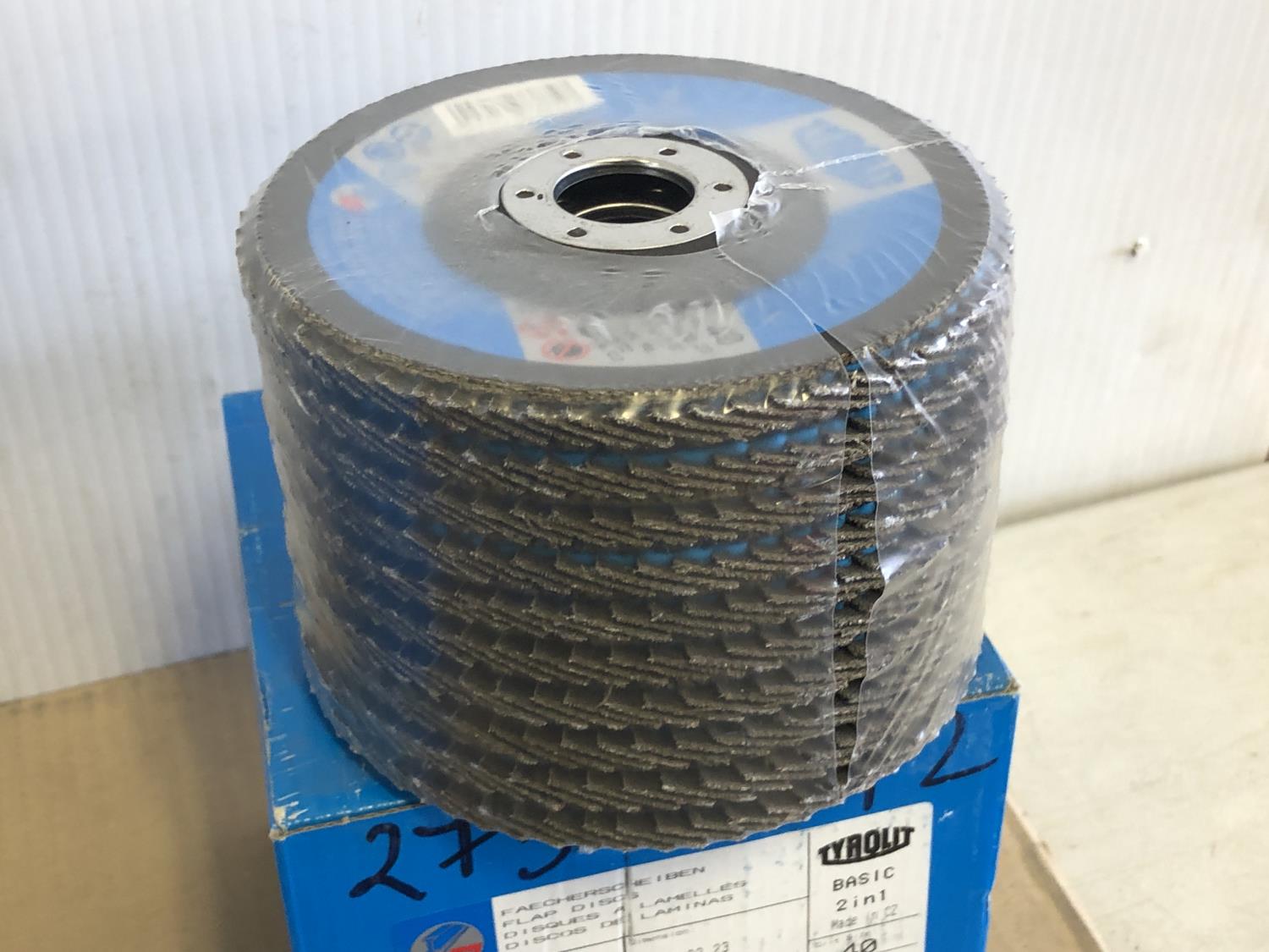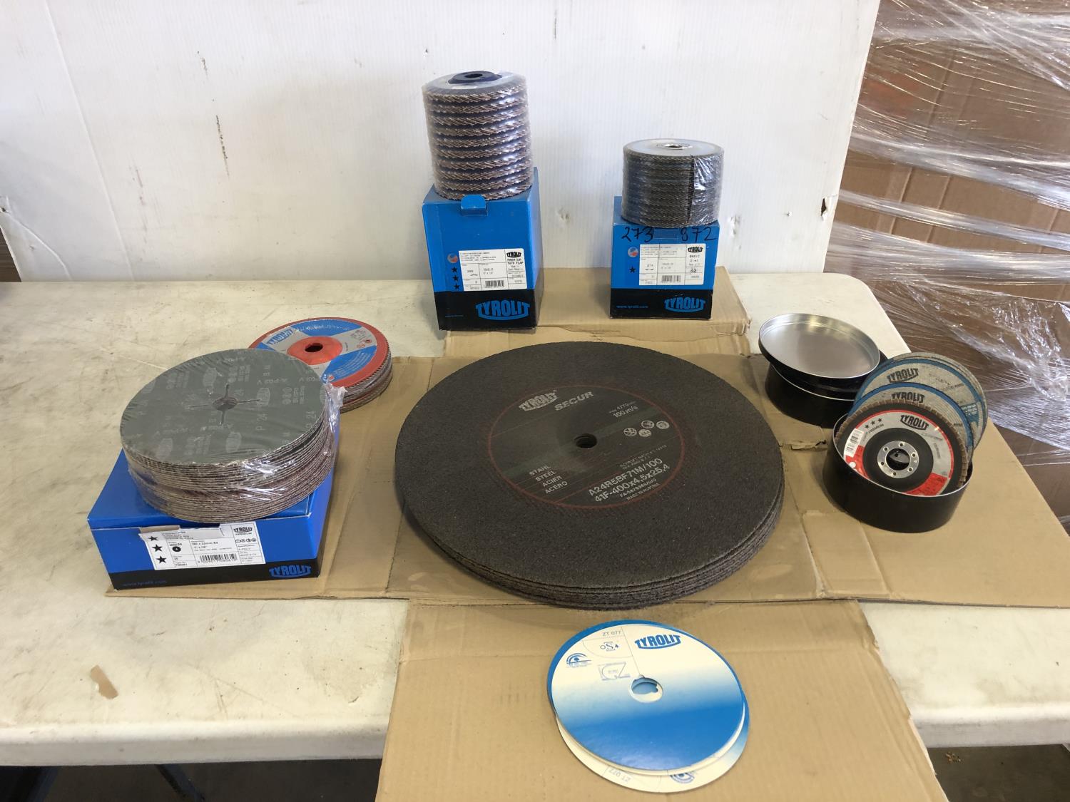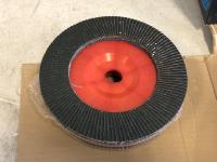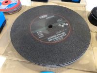 (8) 16 inch chop saw blades, (20) 5 inch flap discs, (3) 7 inch flap discs, (25) 7 inch fibre discs,