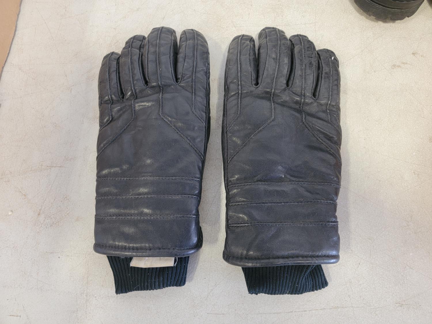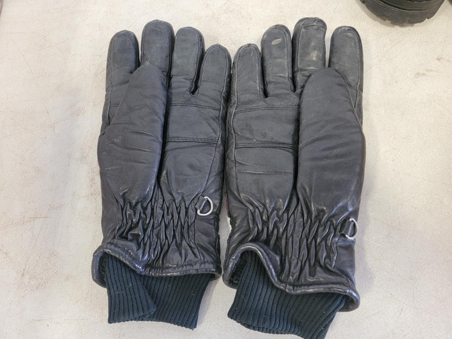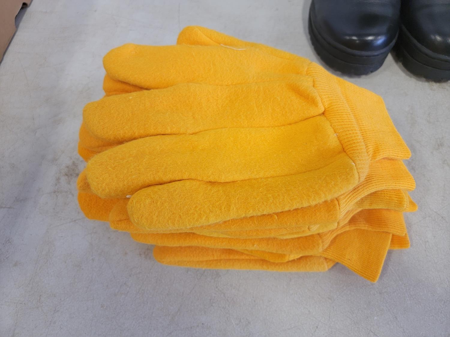 (8) pairs of fabric gloves, leather gloves, men's size 8-1/2 Enforcer boots, men's size 8EE Windriver shoes