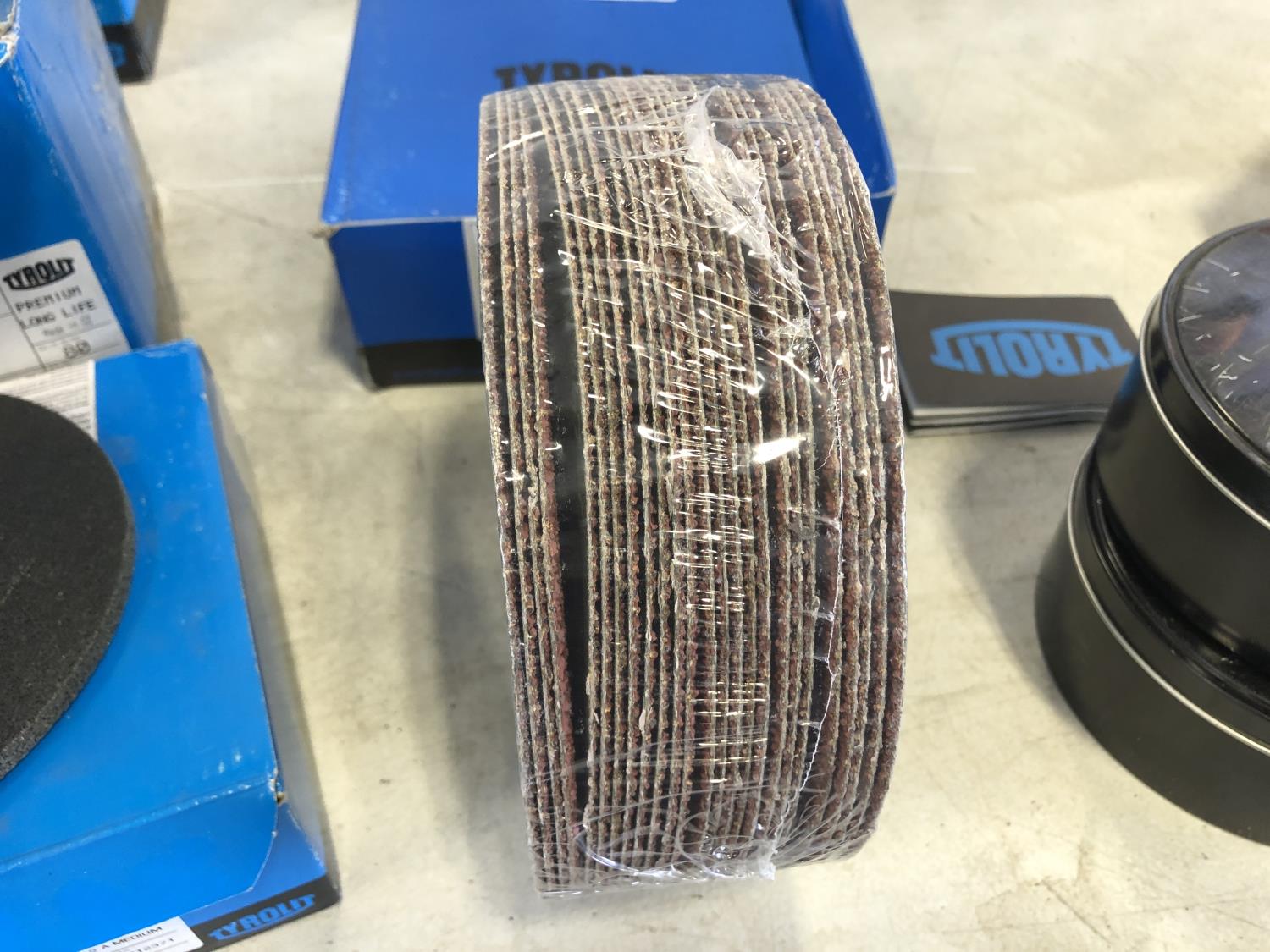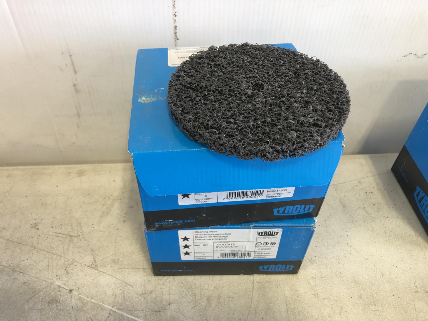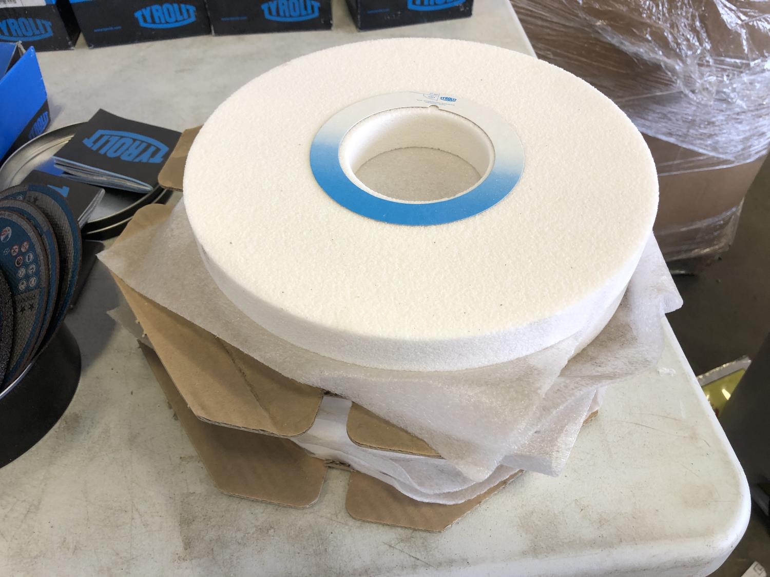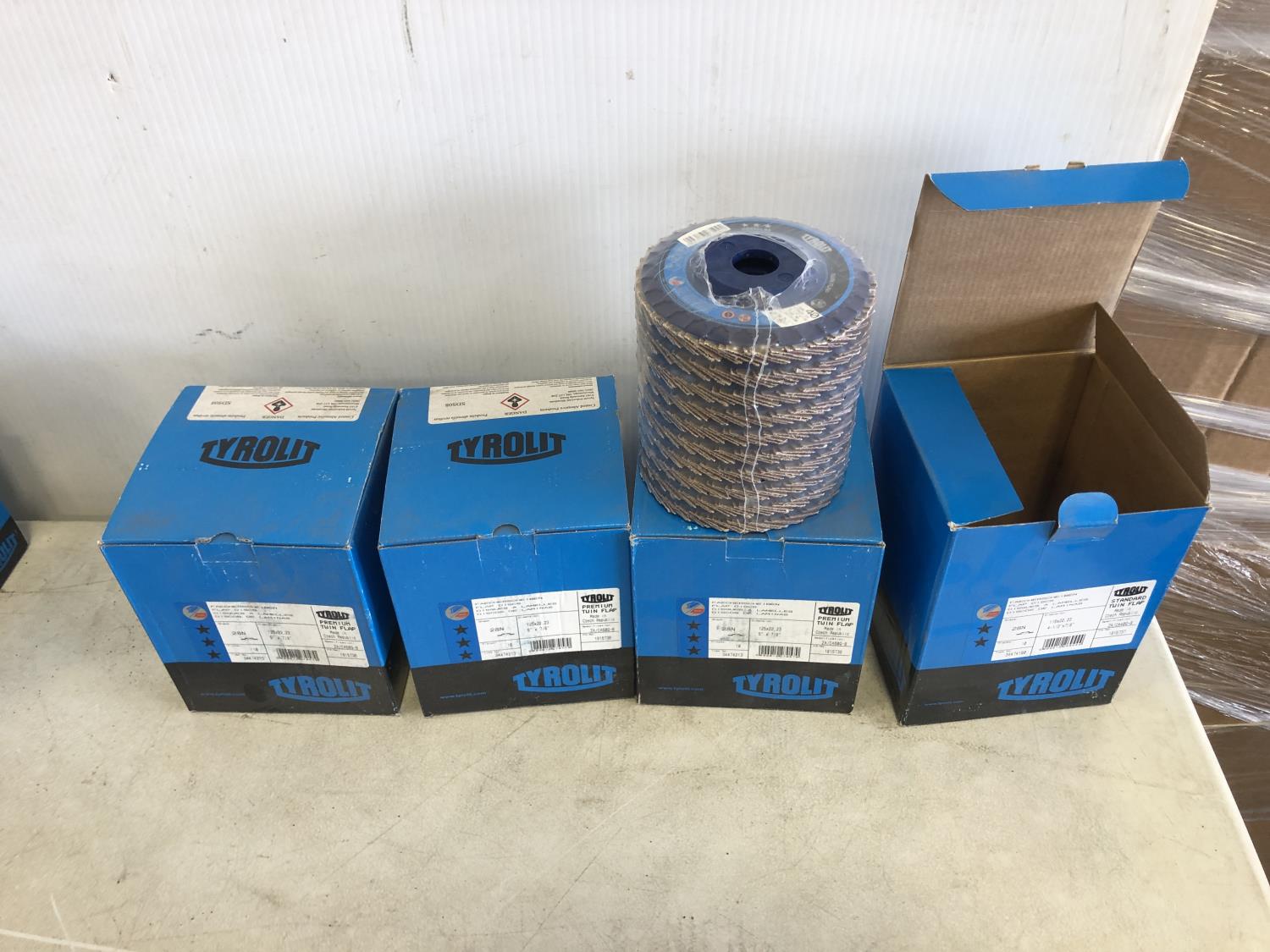 (4)10 inch x 1 inch grind stones, (25) 7 inch fibre discs, (10) 7 inch flap discs, (5) unitized wheels, (10) 6 inch cleaning discs, (40) 5 inch flap discs, (2) variety packs
