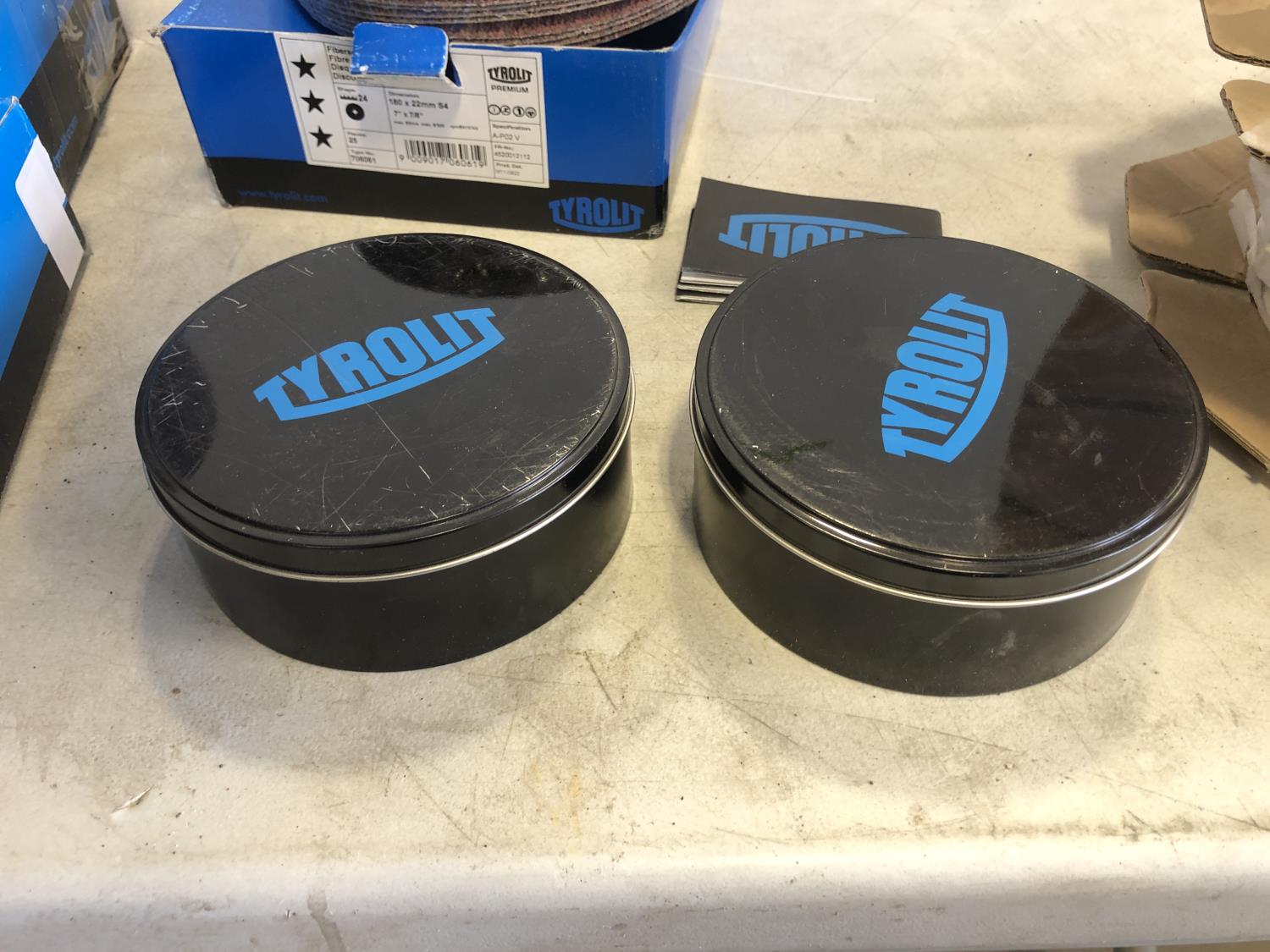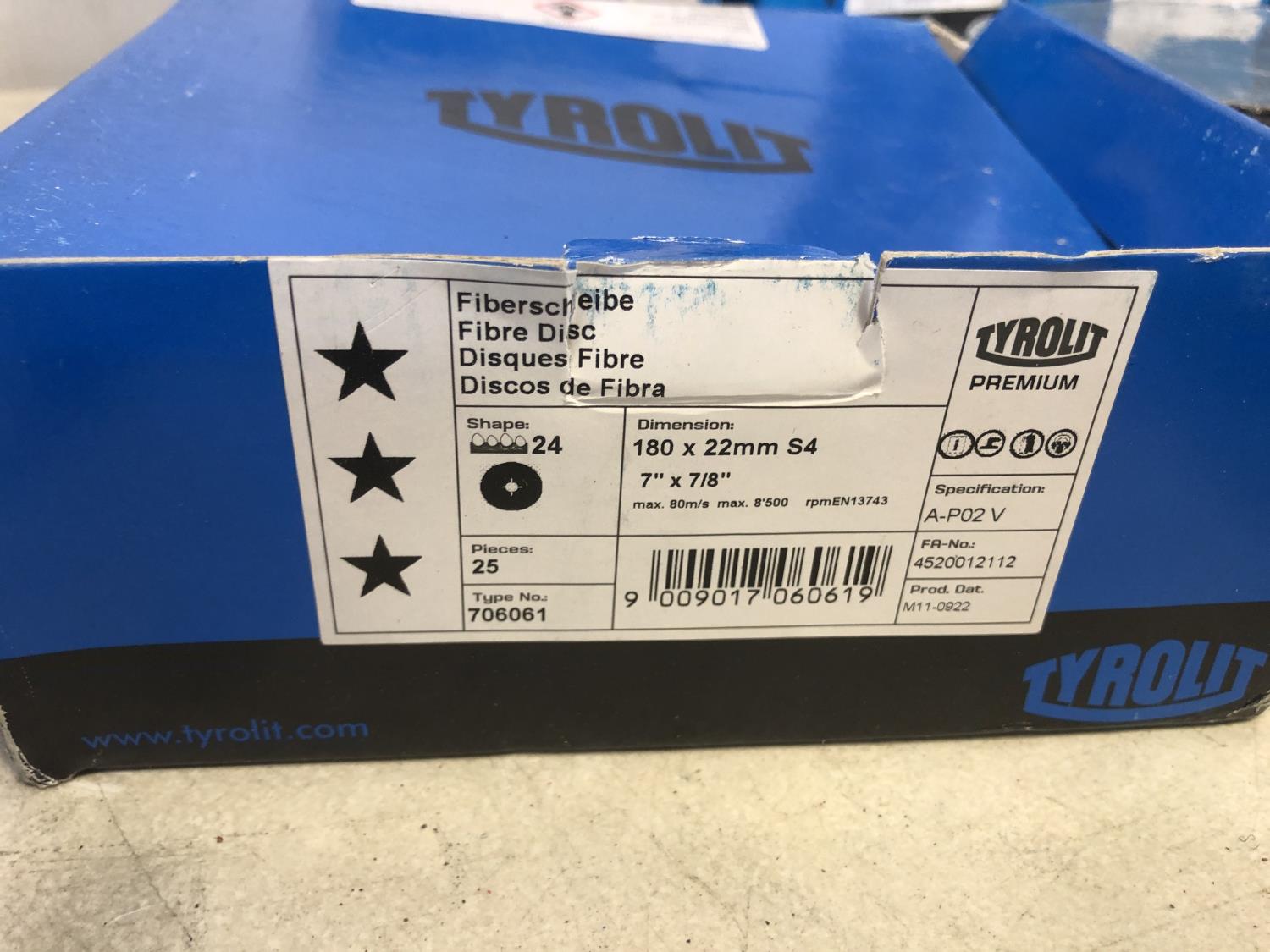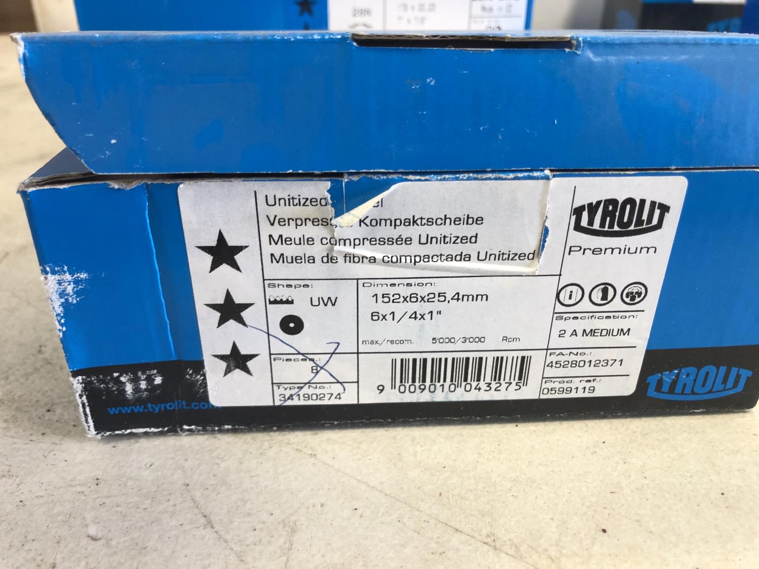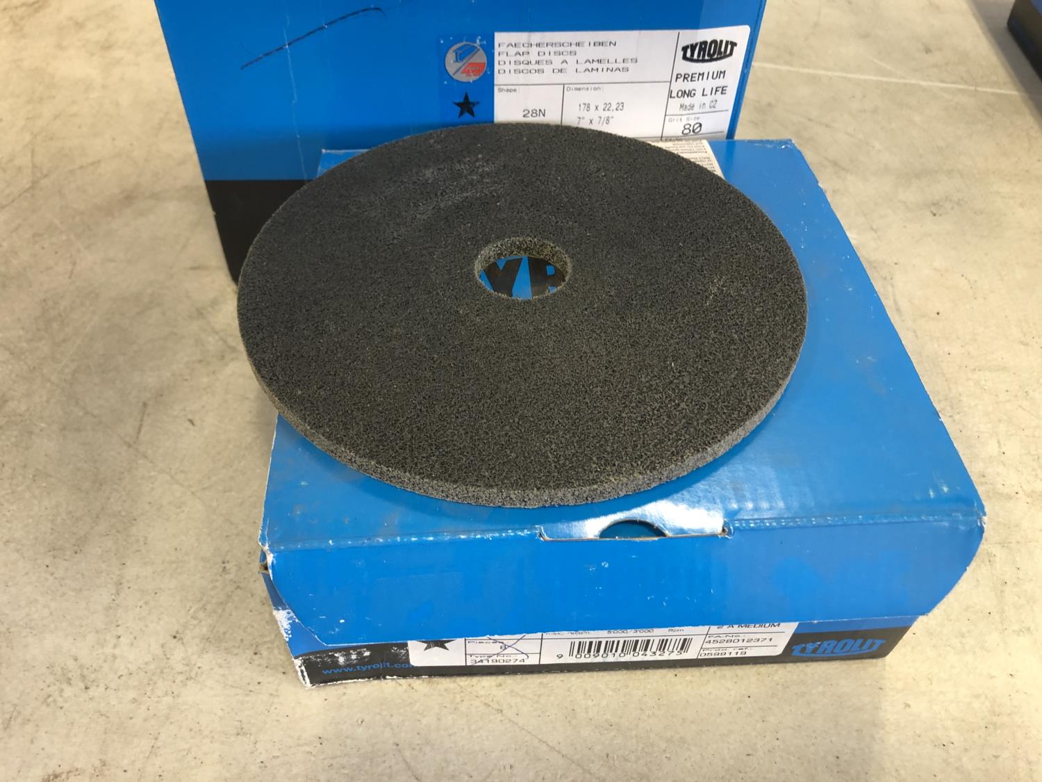 (4)10 inch x 1 inch grind stones, (25) 7 inch fibre discs, (10) 7 inch flap discs, (5) unitized wheels, (10) 6 inch cleaning discs, (40) 5 inch flap discs, (2) variety packs