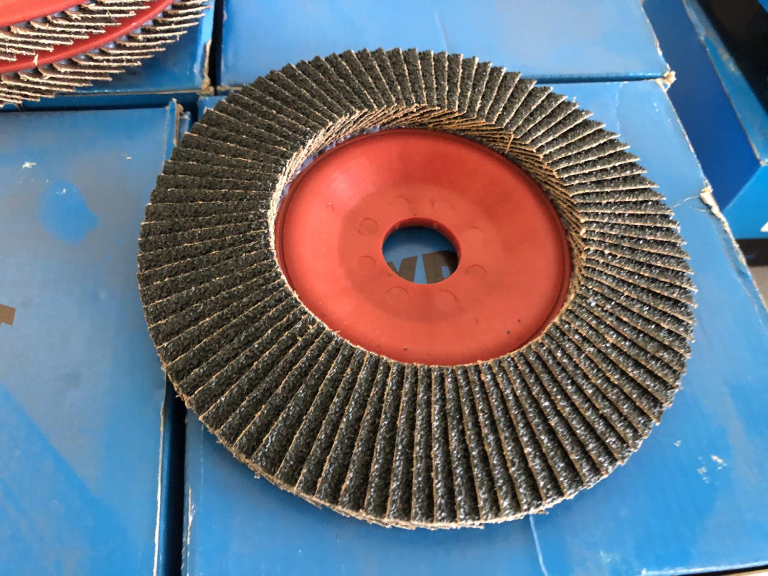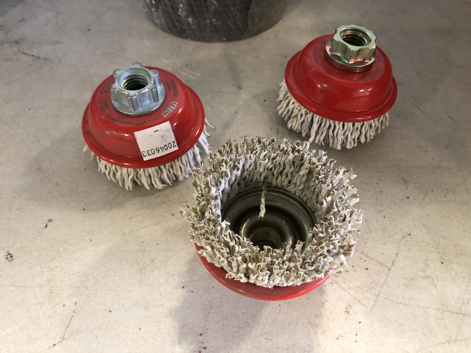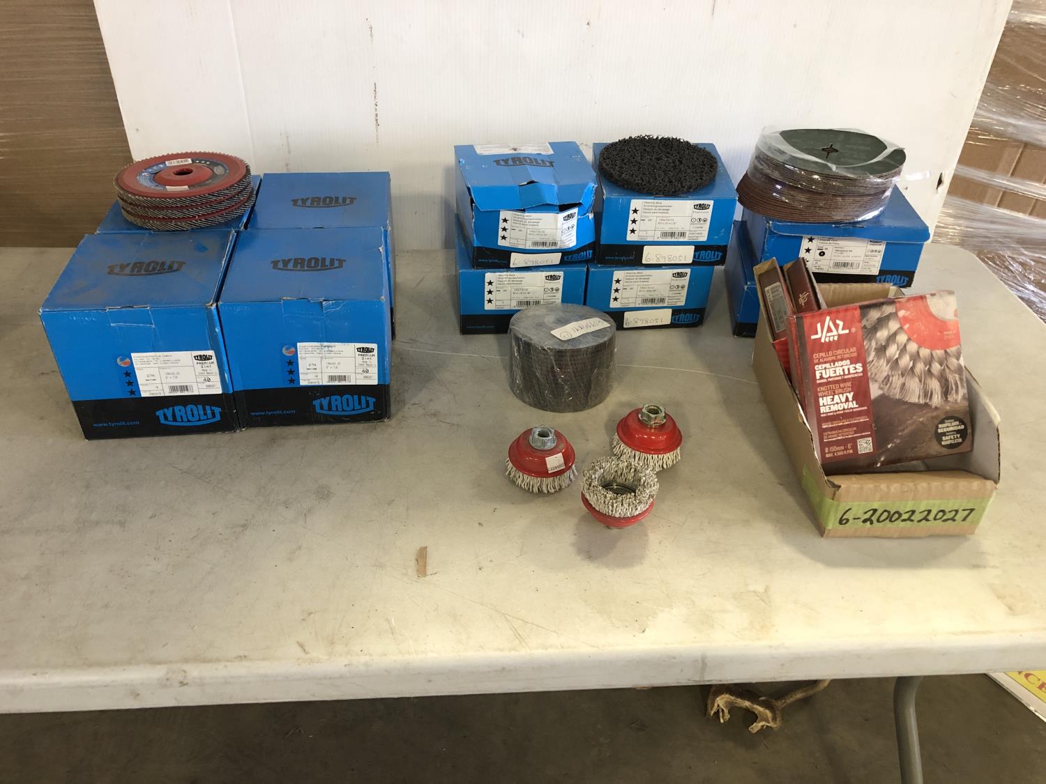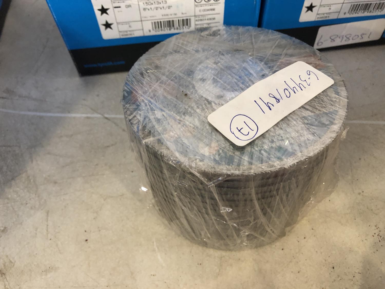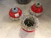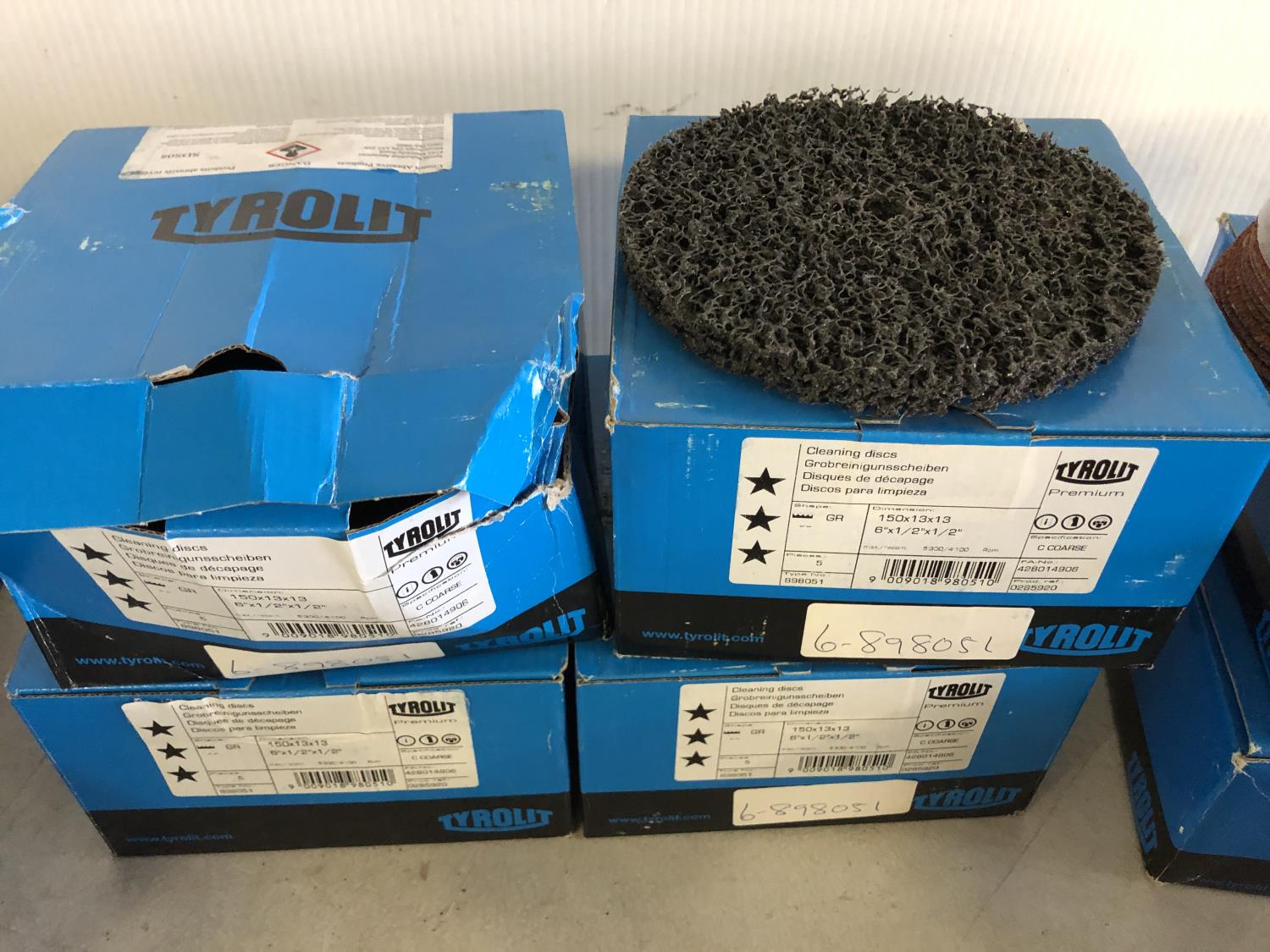 3 inch cup brush, 5 inch grinding discs, 6 inch 40 grit flap discs, 6 inch cleaning discs, 6 inch wire wheels, 7 inch course fiber discs