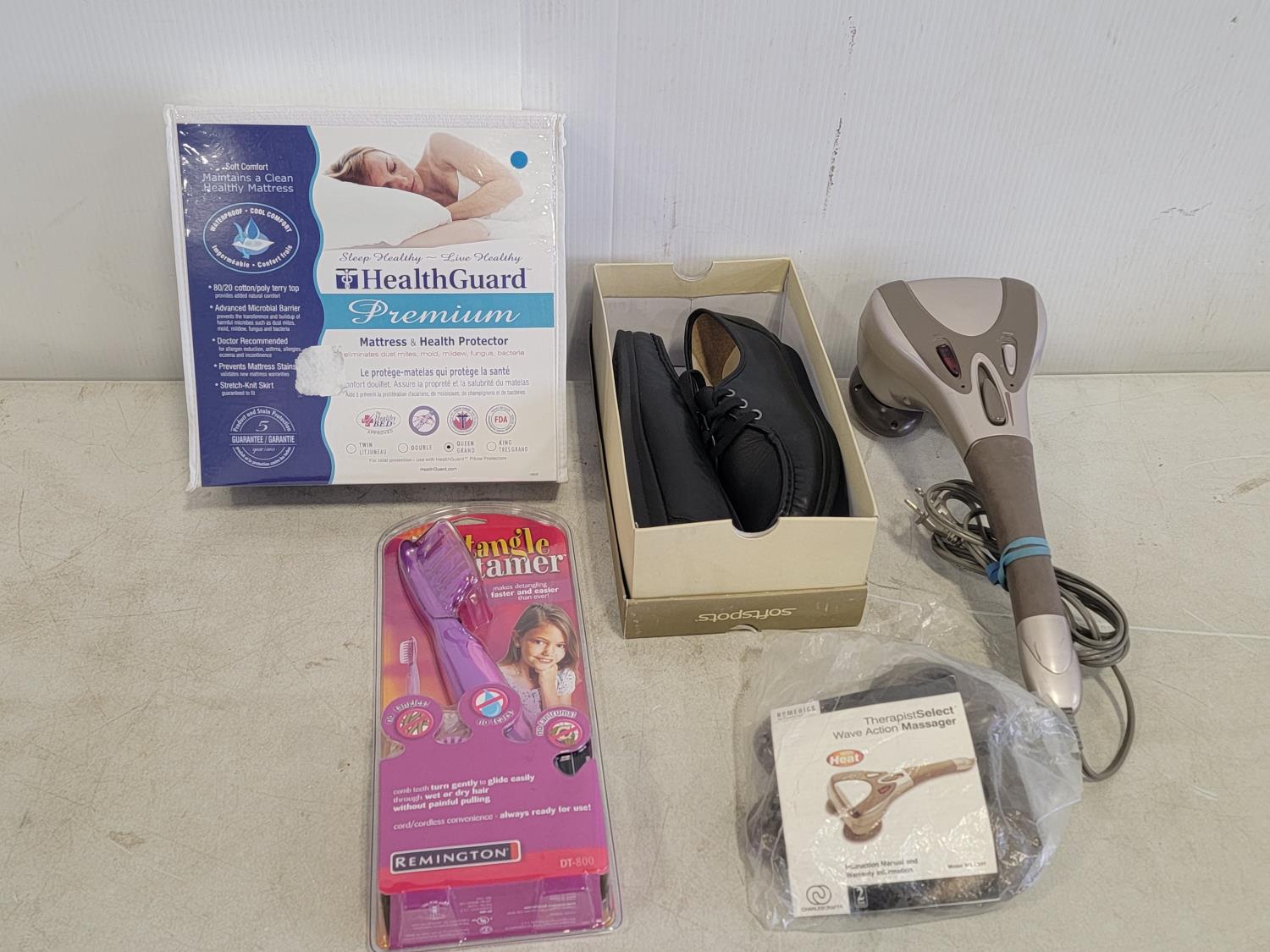 queen size mattress protector, Softspot 9-1/2 size women's shoes, massager, Remington tangle tamer