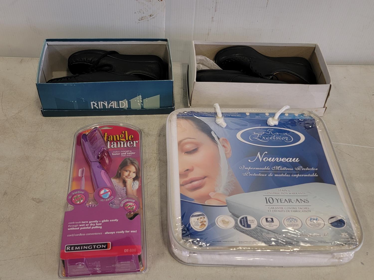 Rinaldi size 6 women's shoes, twin mattress protector, Remington tangle tamer