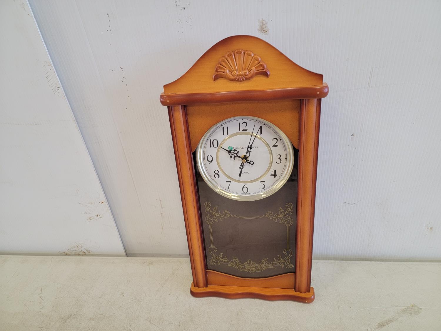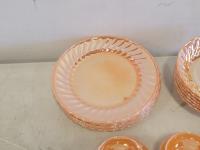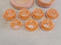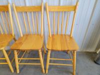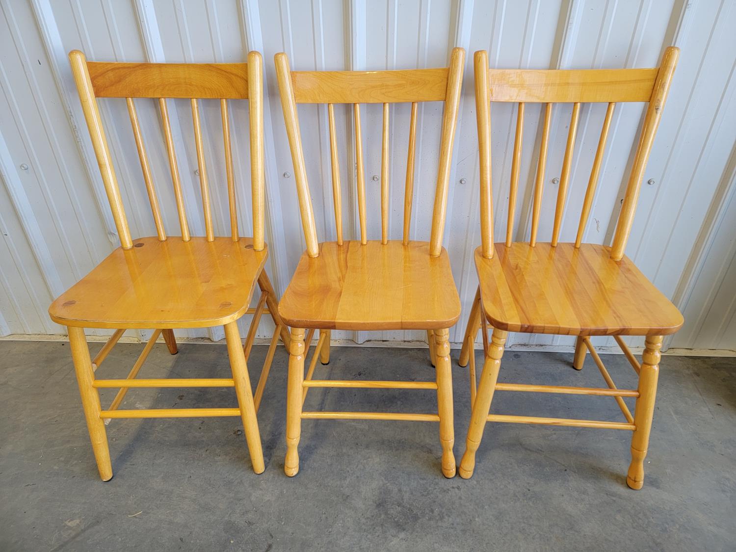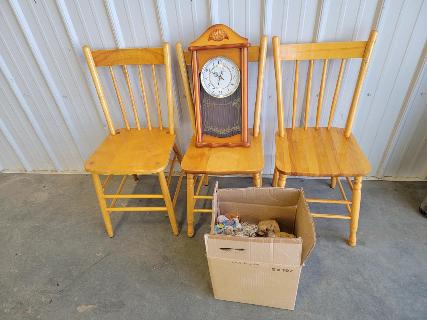 (3) wooden chairs, wall clock, qty of dishes: (6) plates, (6) bowls, (7) teacups, (6) saucers
