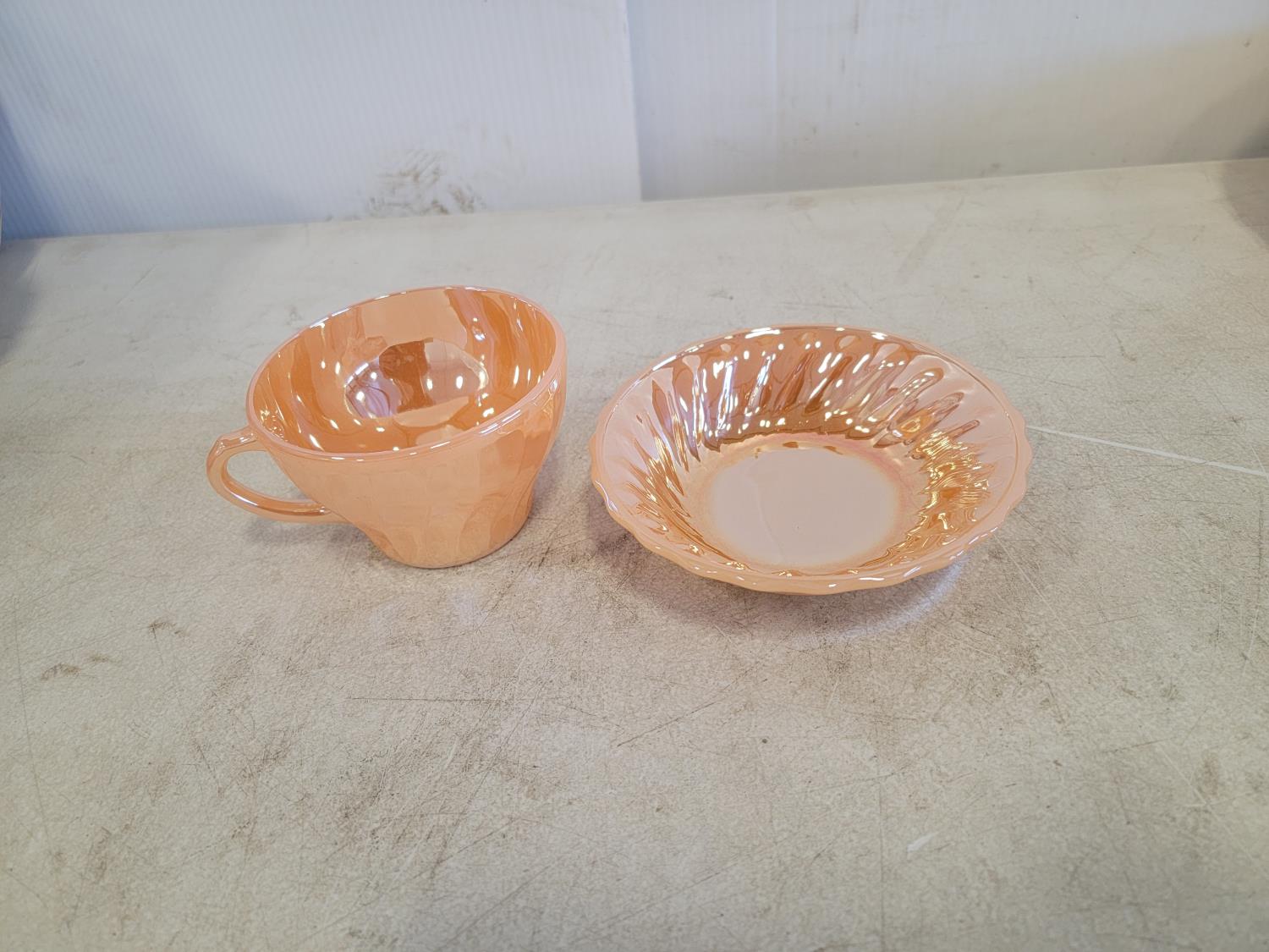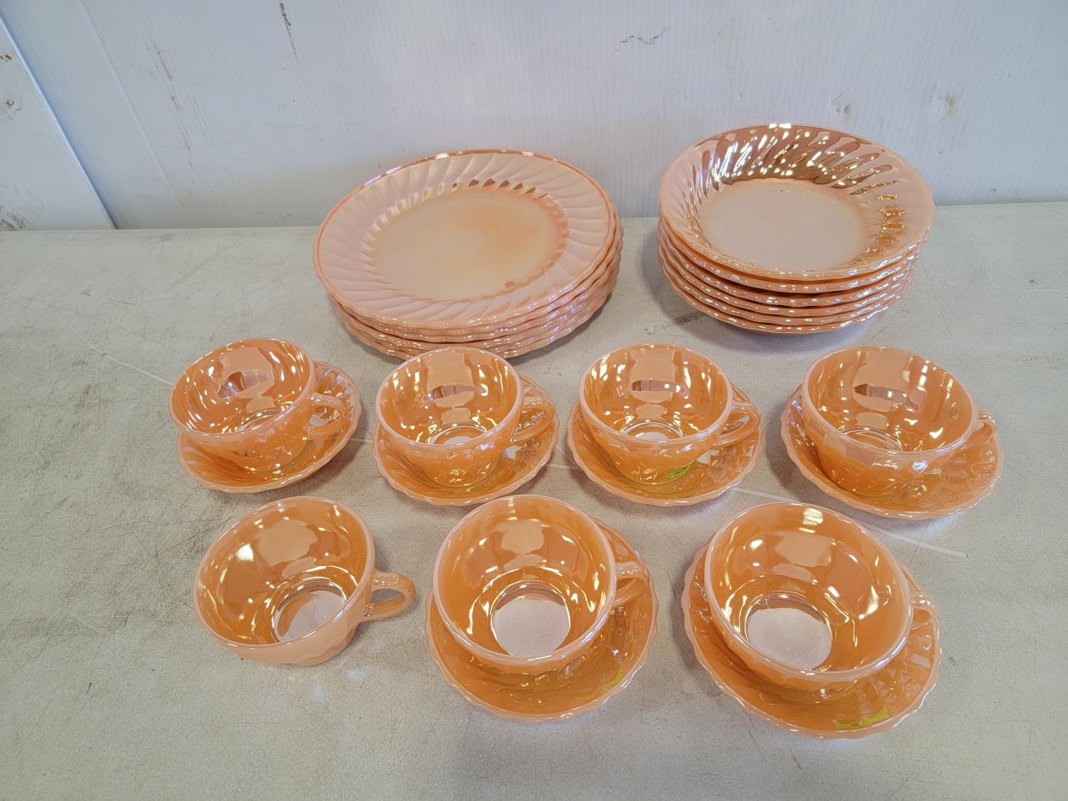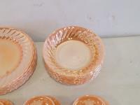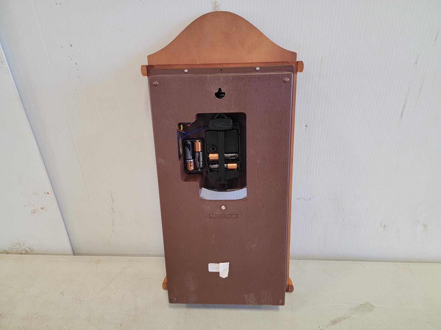 (3) wooden chairs, wall clock, qty of dishes: (6) plates, (6) bowls, (7) teacups, (6) saucers