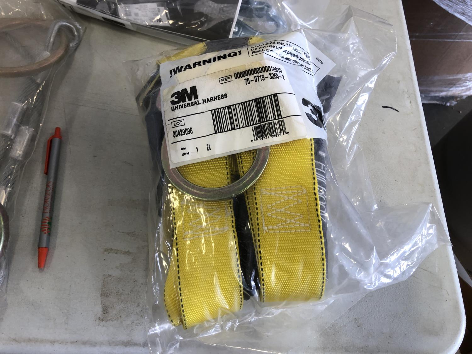 Full body harness, 6 ft shock lanyard, carabiner, mega swivel D-bolt, cable anchor choker, (2) nylon anchor chokers, (10) clear safety classes