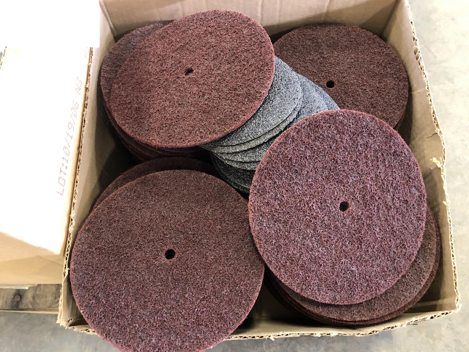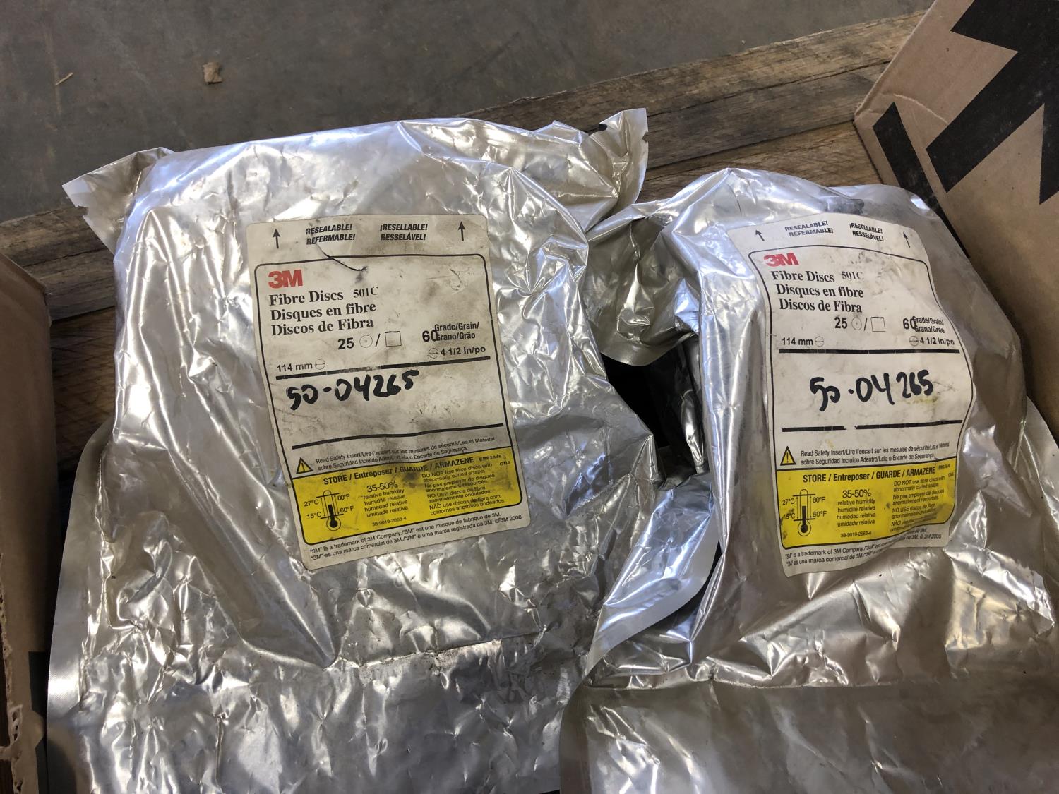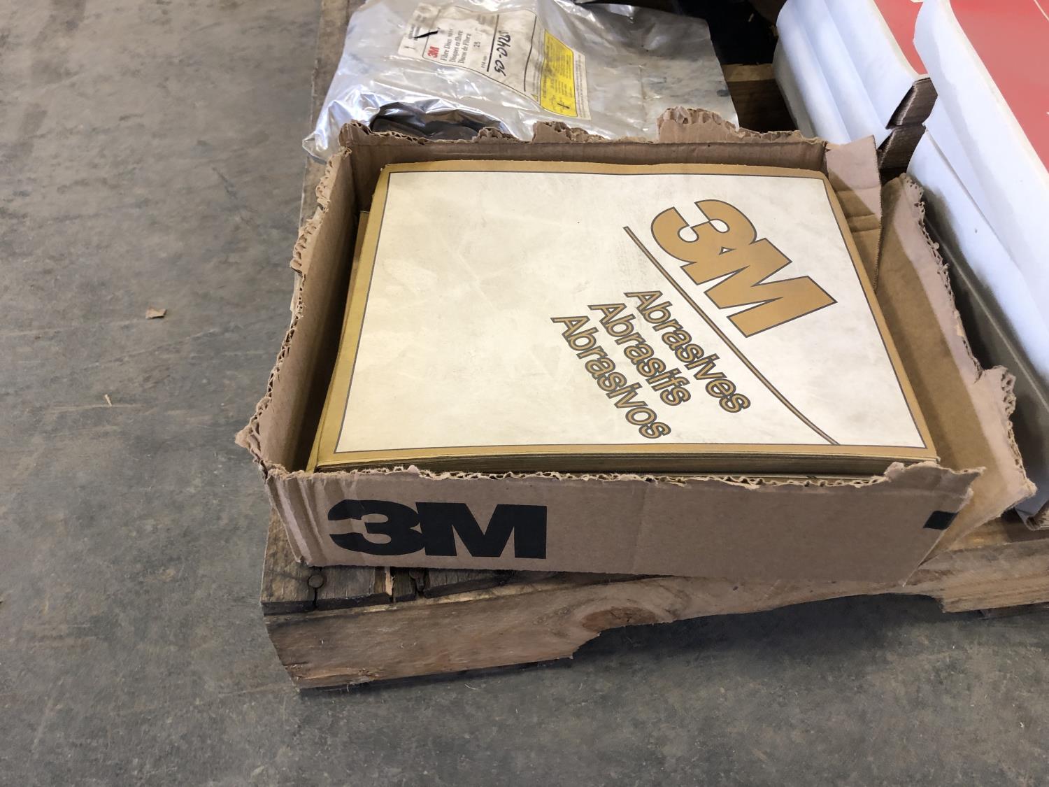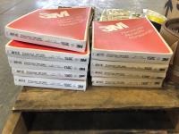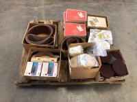 Assorted 9 inch x 11 inch sheets of sand paper, (10) 6 inch x 108 inch P100 sanding belts, assorted fibre discs, assorted sanding belts
