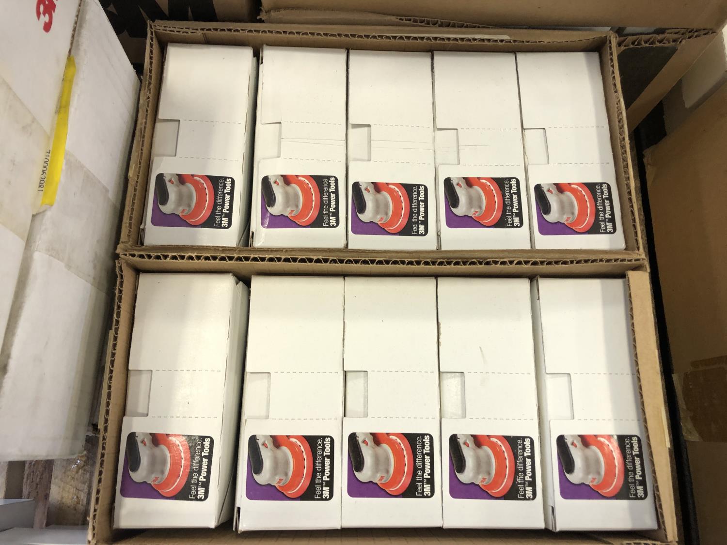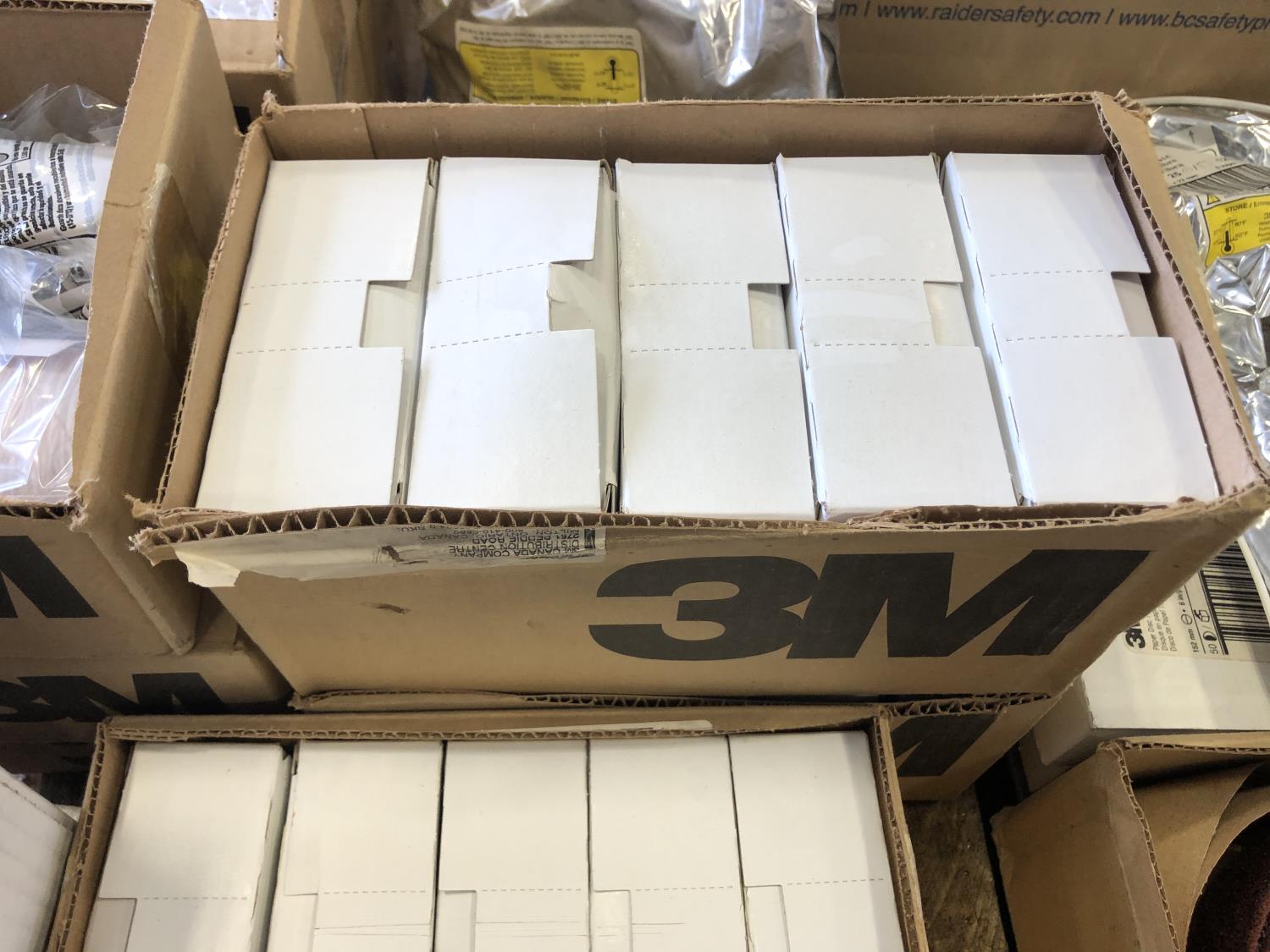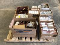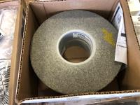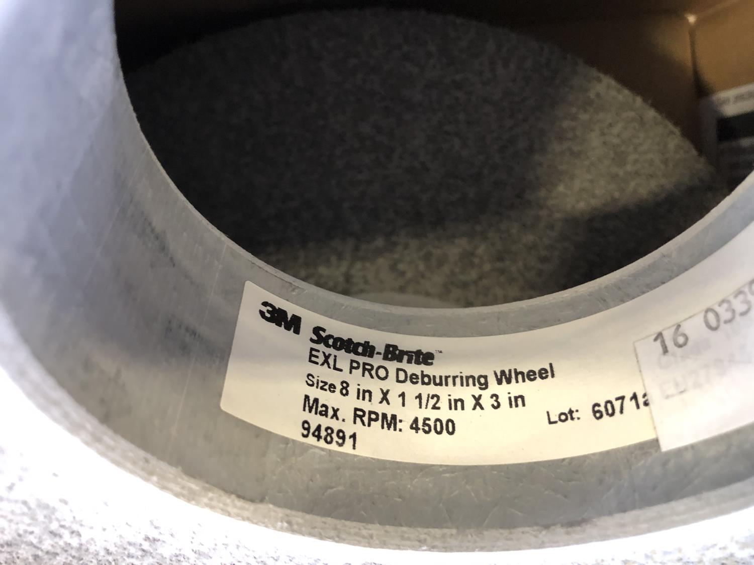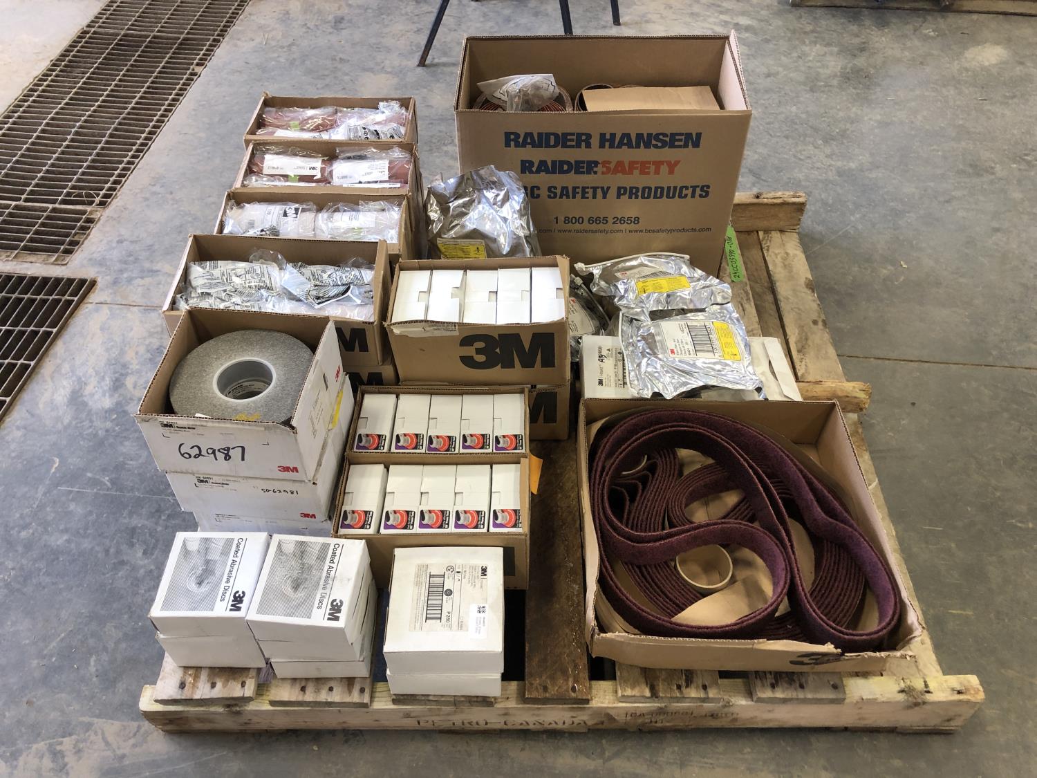 (48) 6 inch fiber disc rolls P100 and P800, (7) 2 inch x 90 inch surface conditioning belts, (20) 5 inch fiber discs of various grits, (4) 6 inch fiber discs of various grits, (5) fiber disc bags, assorted sanding belts, (6) 8 inch x 1-1/2 inch deburring wheels