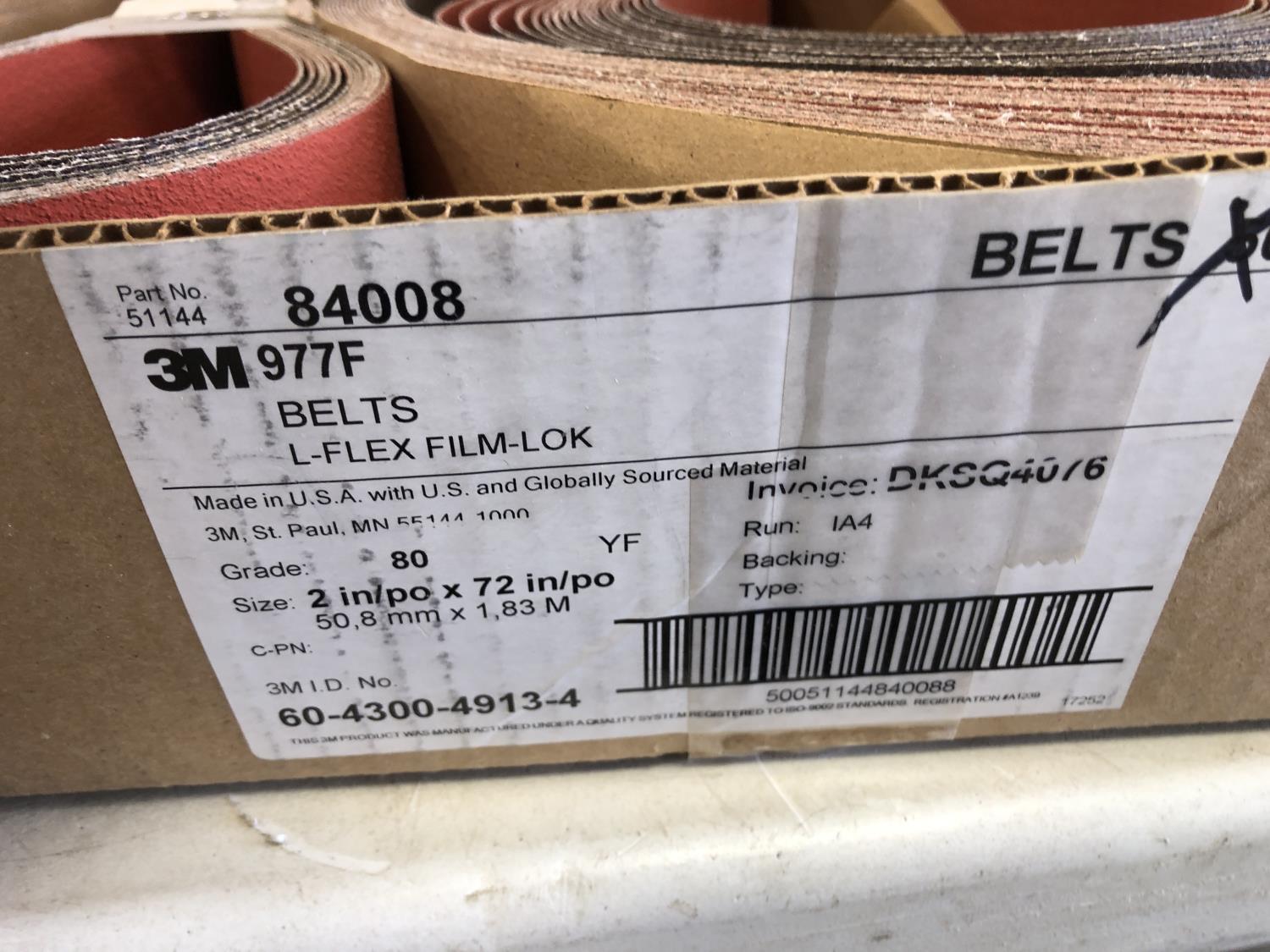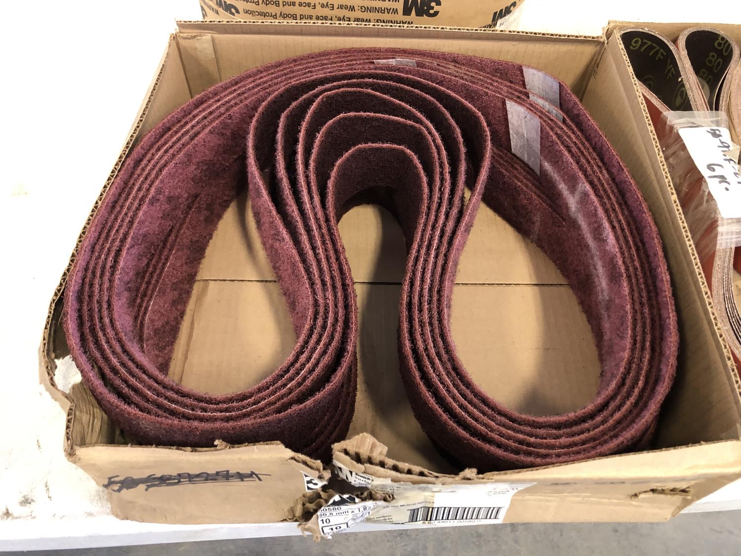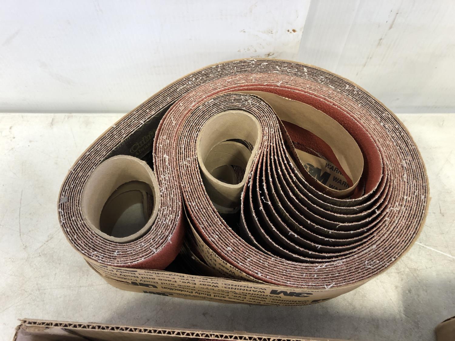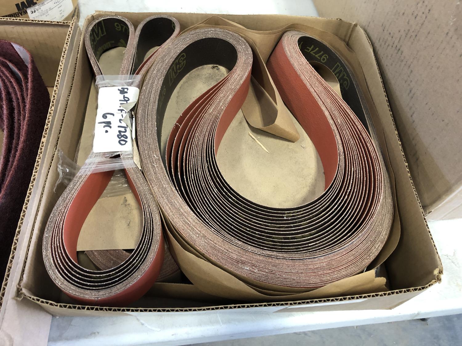 (10) 2 inch x 72 inch resurfacing belts, (19) 2 inch x 72 inch 80 grit sanding belts, (30) 2 inch x 72 inch assorted grits sanding belts