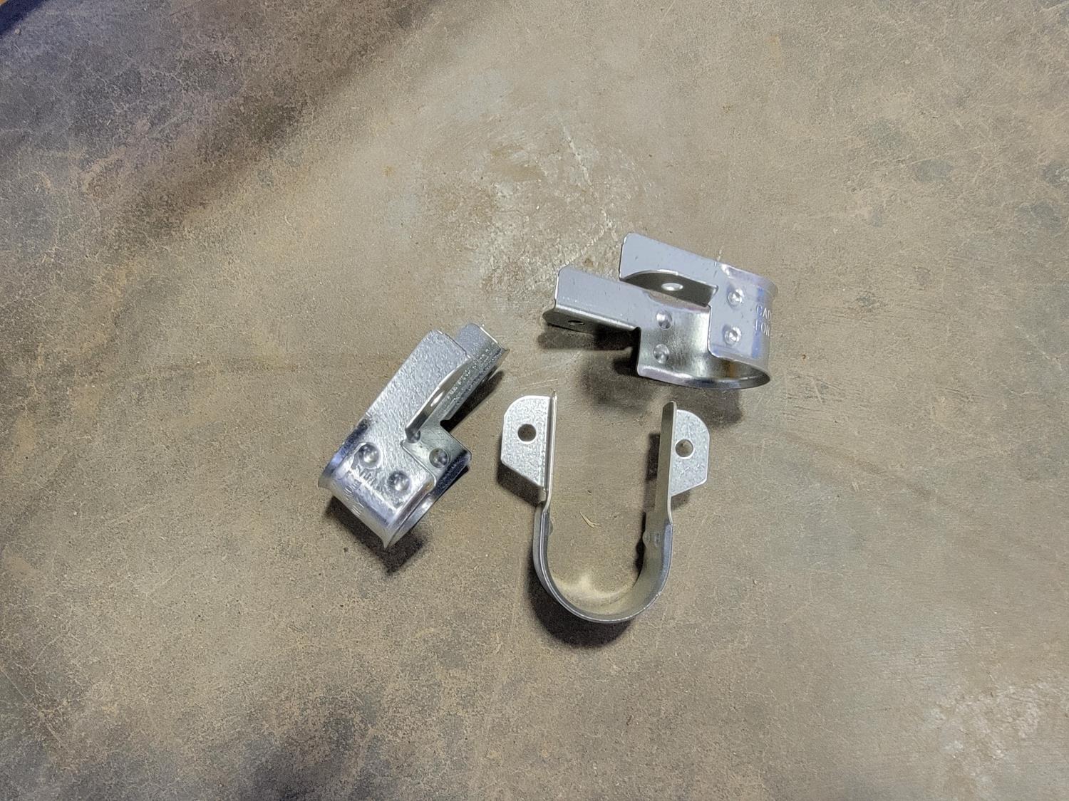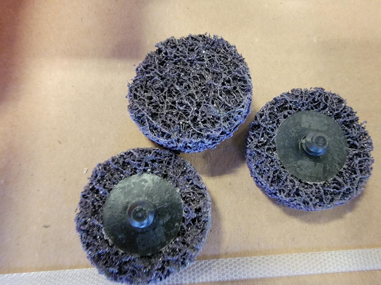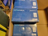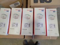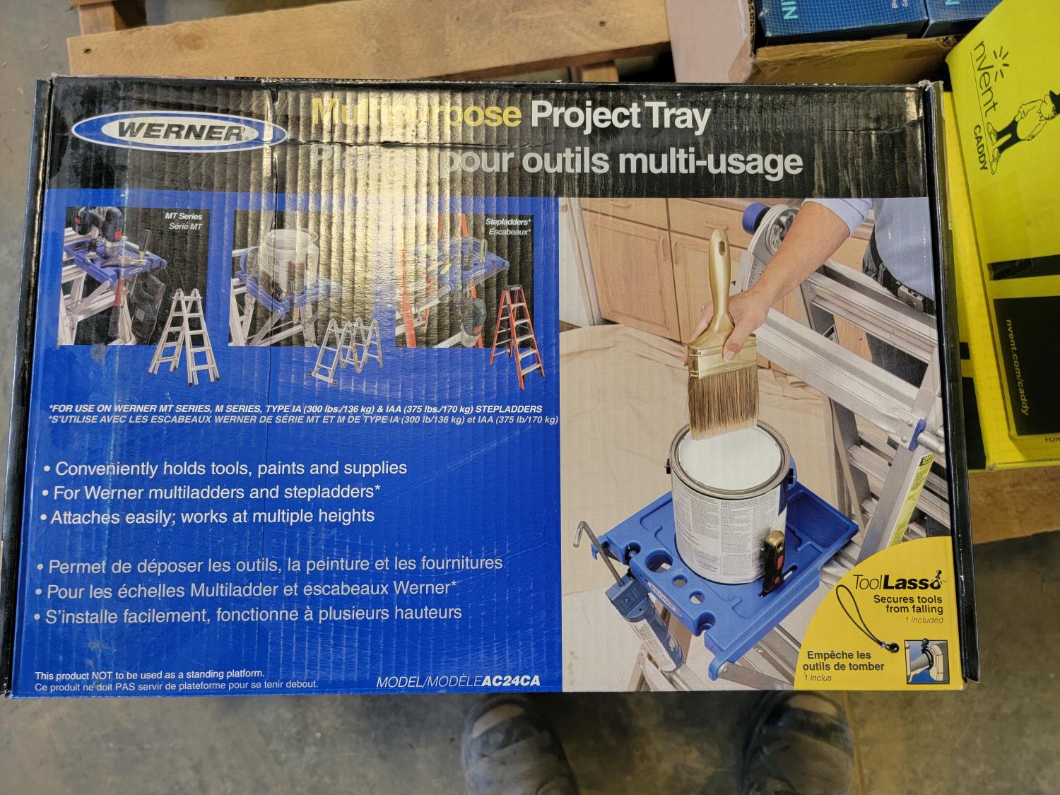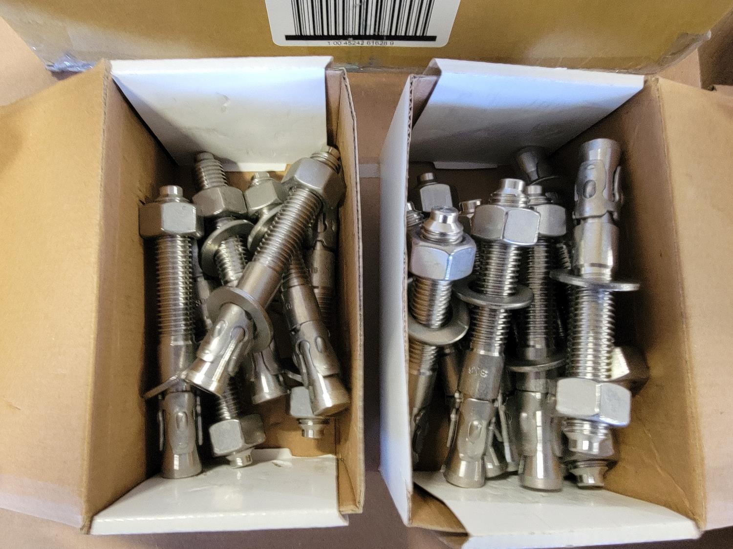1 inch galvanized pipe straps, (8) boxes of blue nitrile gloves, (3) multipurpose project trays, concrete anchors, 2 inch shut off valves, (2) facemask visor brackets, 5 inch polishing discs, 2 inch Scotch Brite polish discs, Honeywell face masks