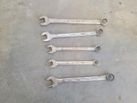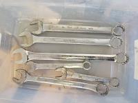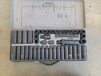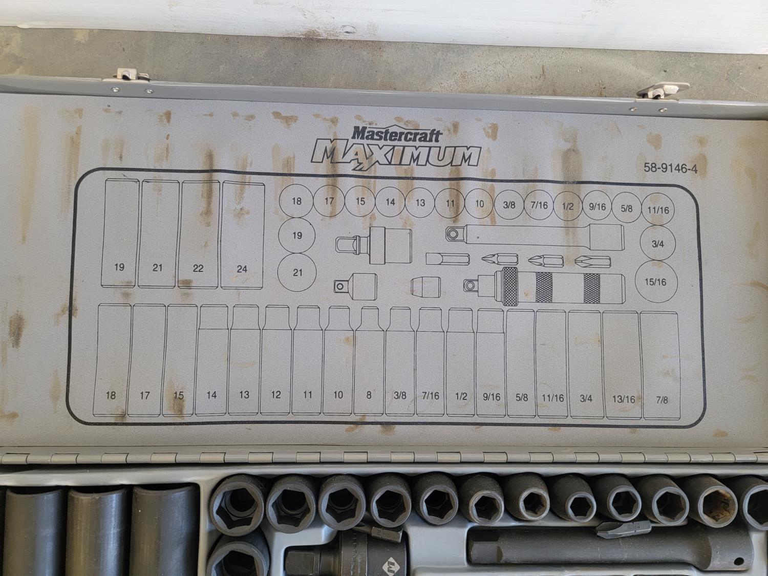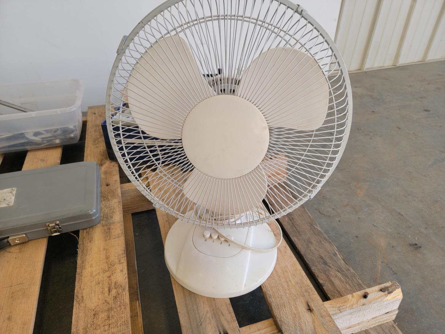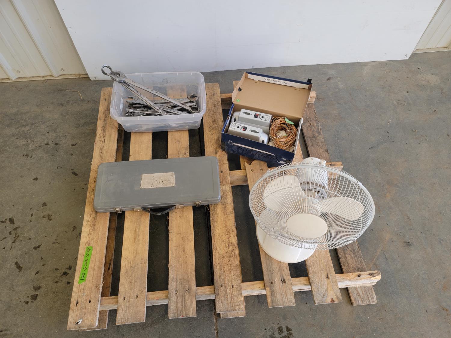 assorted imperial wrenches, Mastercraft Maximum metric socket set, 3 speed table top electric fan, stereo speakers