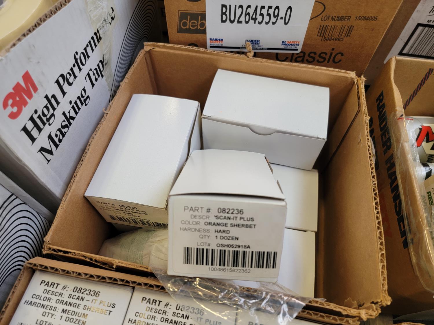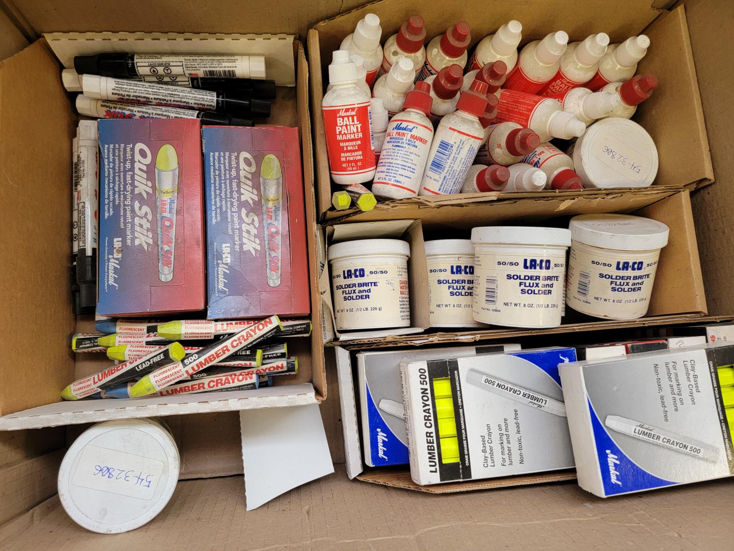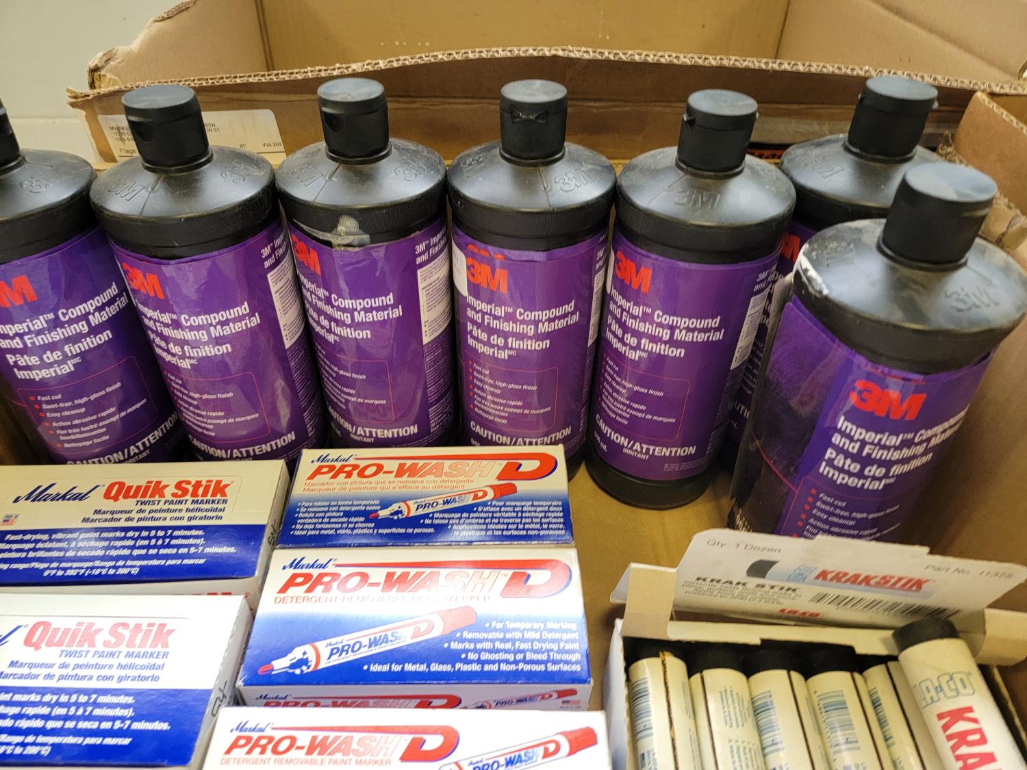 36 mm x 55 mm masking tape, thread compound, compound and finishing material, paint and crayon markers, gasket sealant, marine restorer and wax, hand cleansing paste