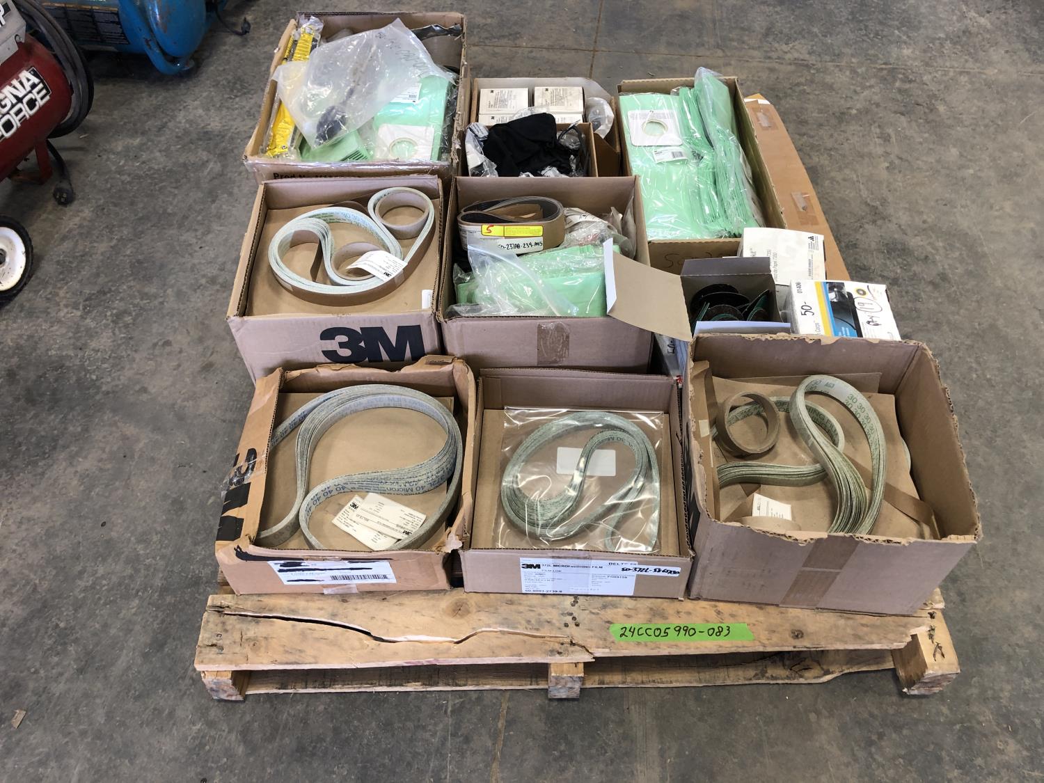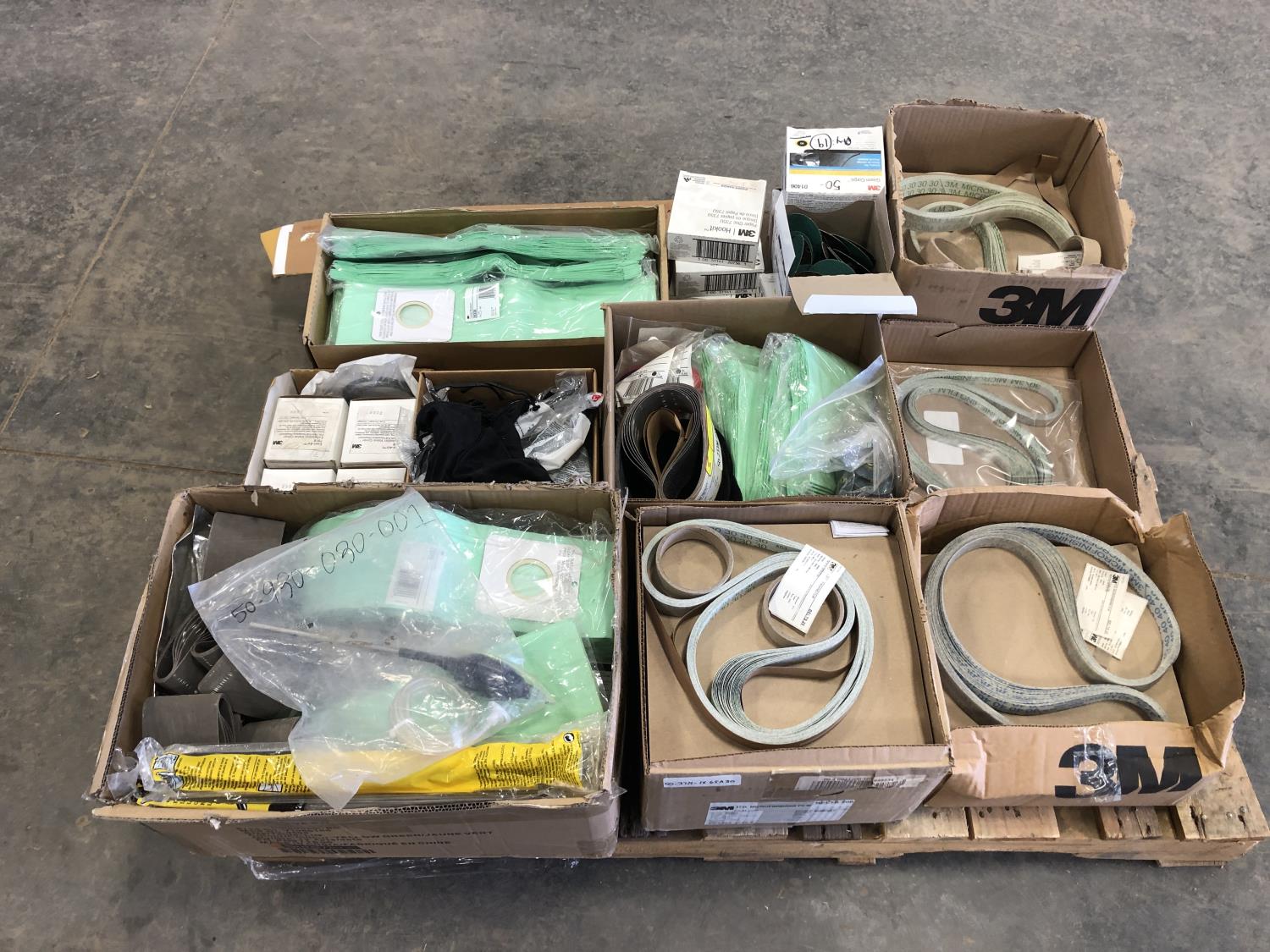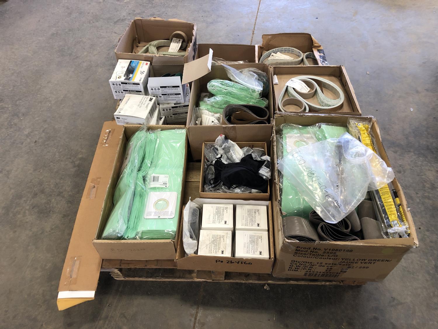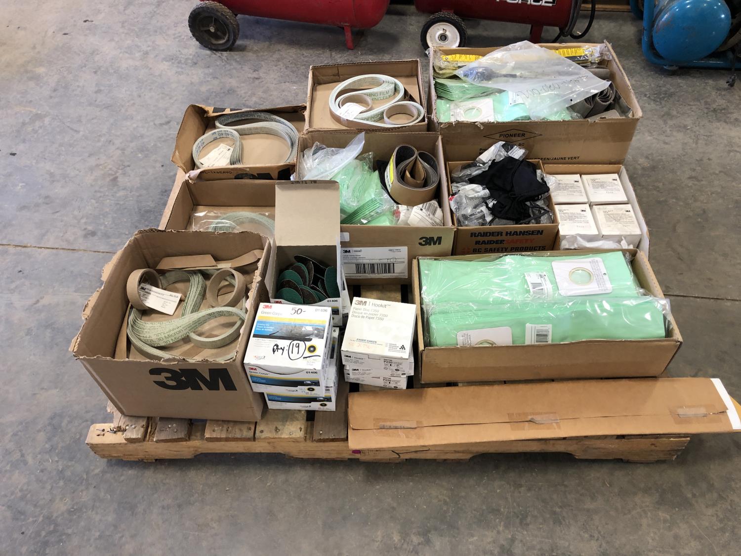 Vacuum bags, safety glasses, assorted sanding belts, fibre discs, 3 inch cutting discs