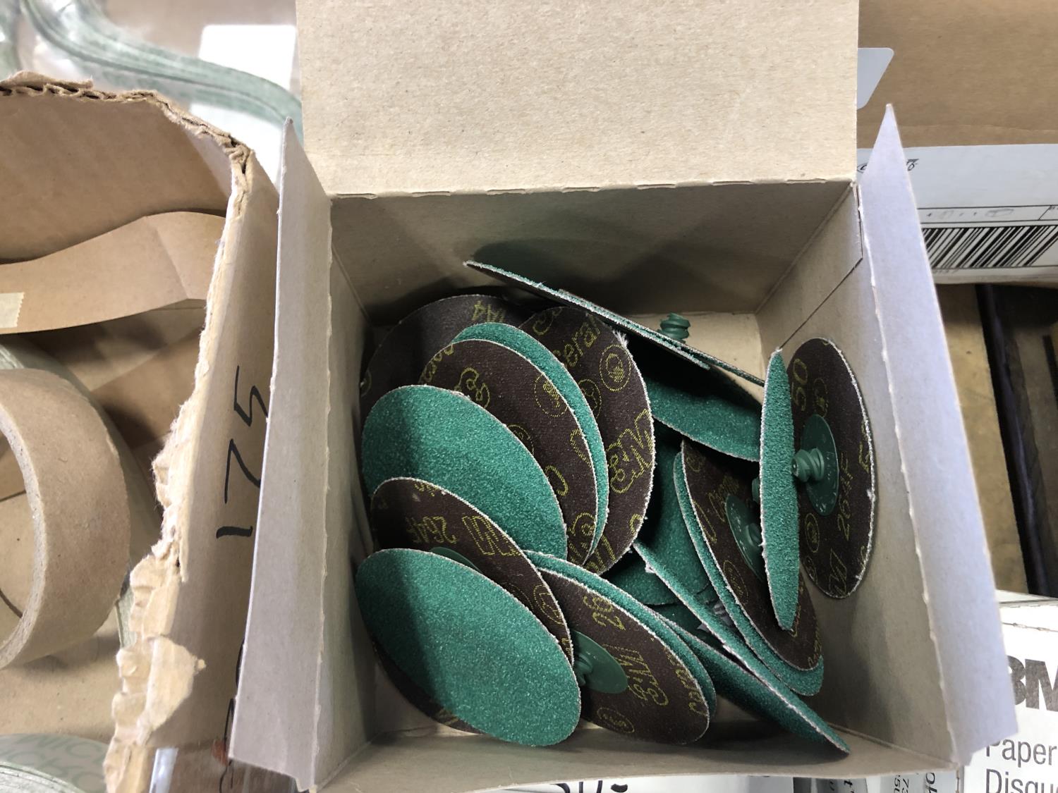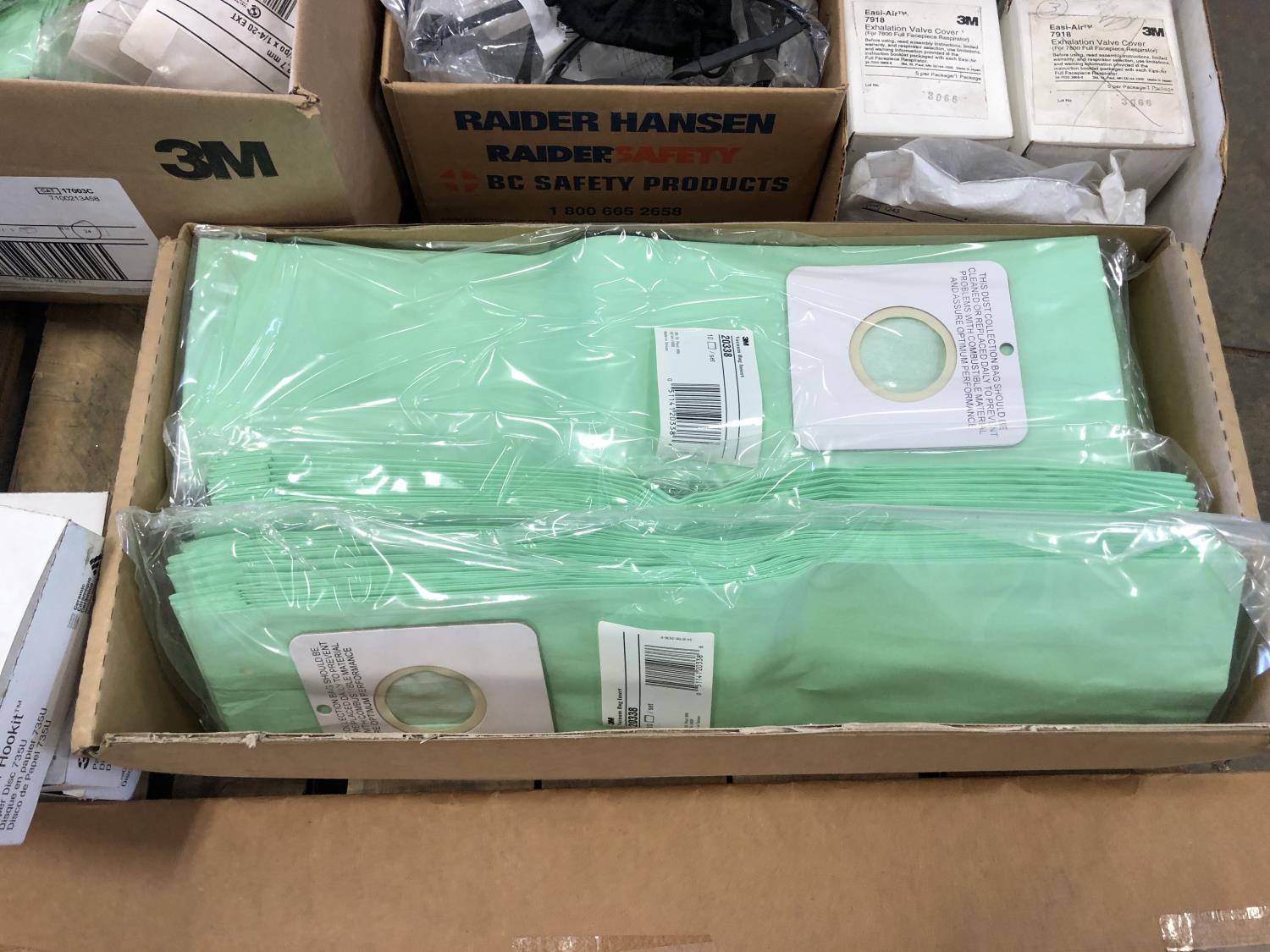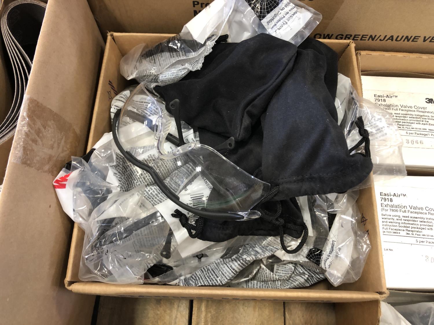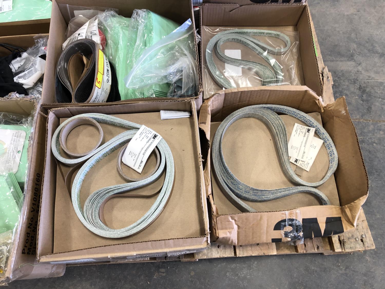 Vacuum bags, safety glasses, assorted sanding belts, fibre discs, 3 inch cutting discs