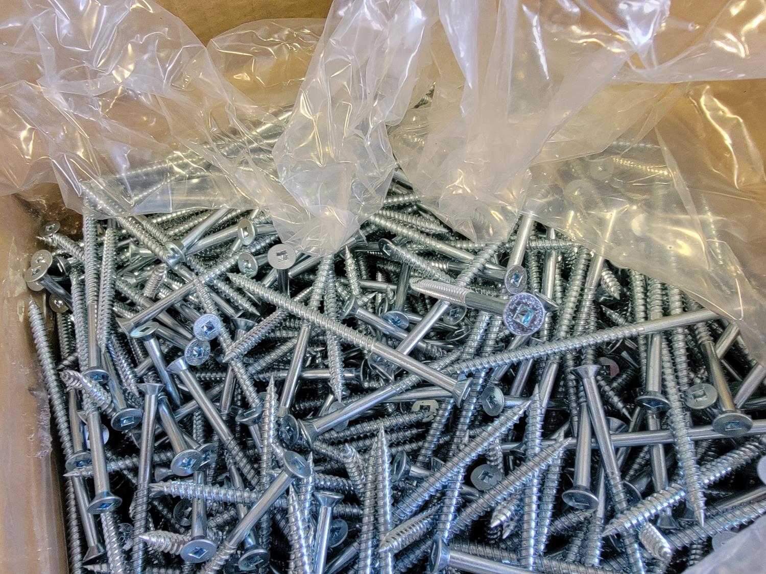 54 inch x 75 inch P18 sanding belts, 12 inch x 4 inch flat head wood screws, 1/2 inch square nuts, brass fittings, steel fittings, (5) 1 inch x 14 inch galvanized bolts, 3/8 inch square nuts
