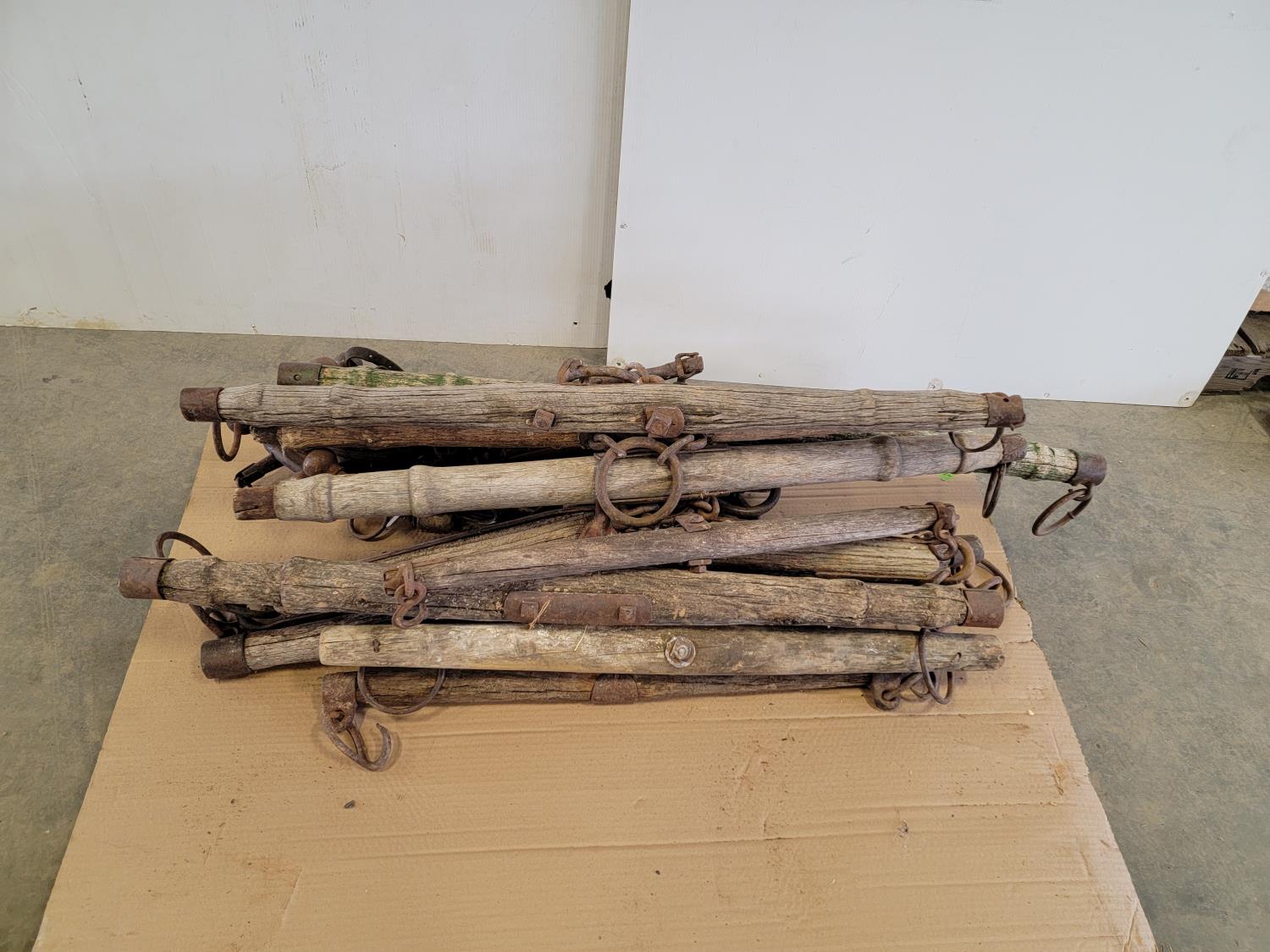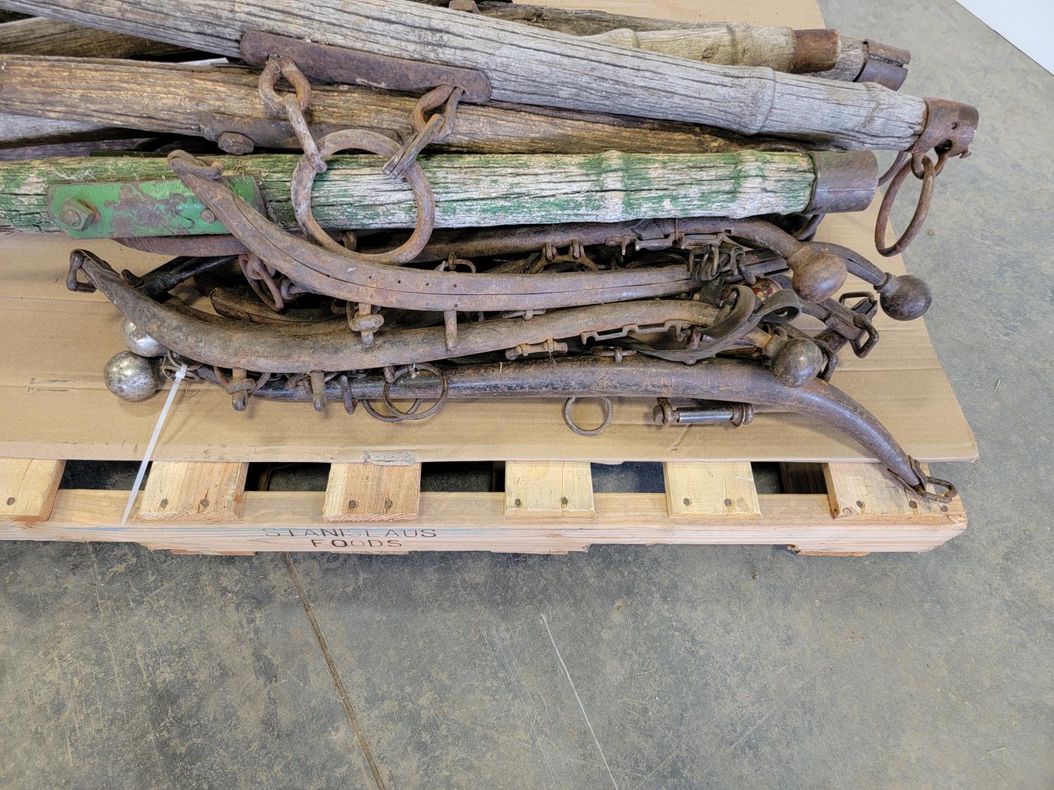Yokes, trees, horse collars, harnesses, scythe