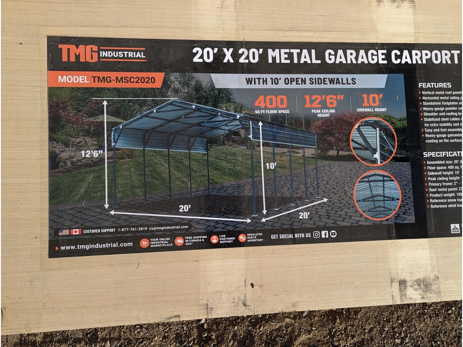 112 TMG Industrial MSC2020 20 Ft X 20 Ft Metal Garage Carport Shed (Unused)