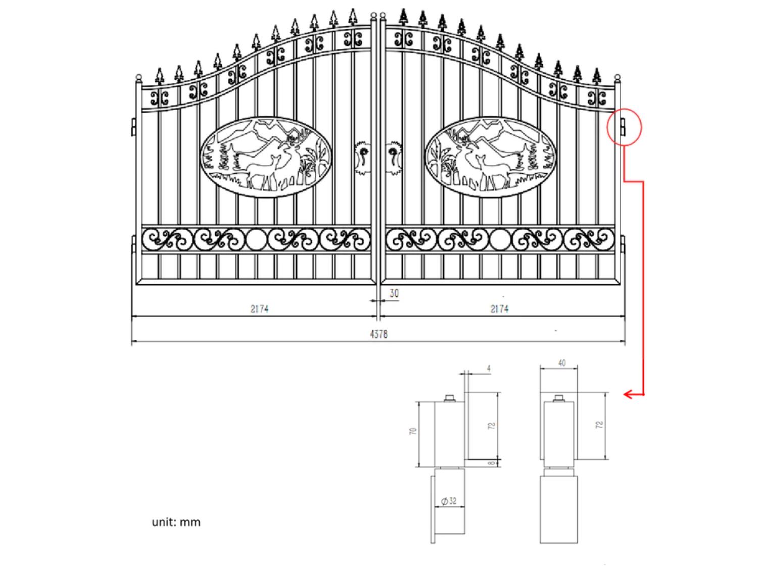 (2) 7 ft gates, right and left side, artwork "Deer" in the middle of gate frame