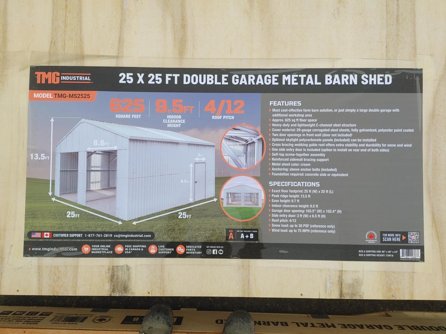 130 TMG Industrial MS2525 25 Ft X 25 Ft Double Garage Metal Barn Shed (Unused)