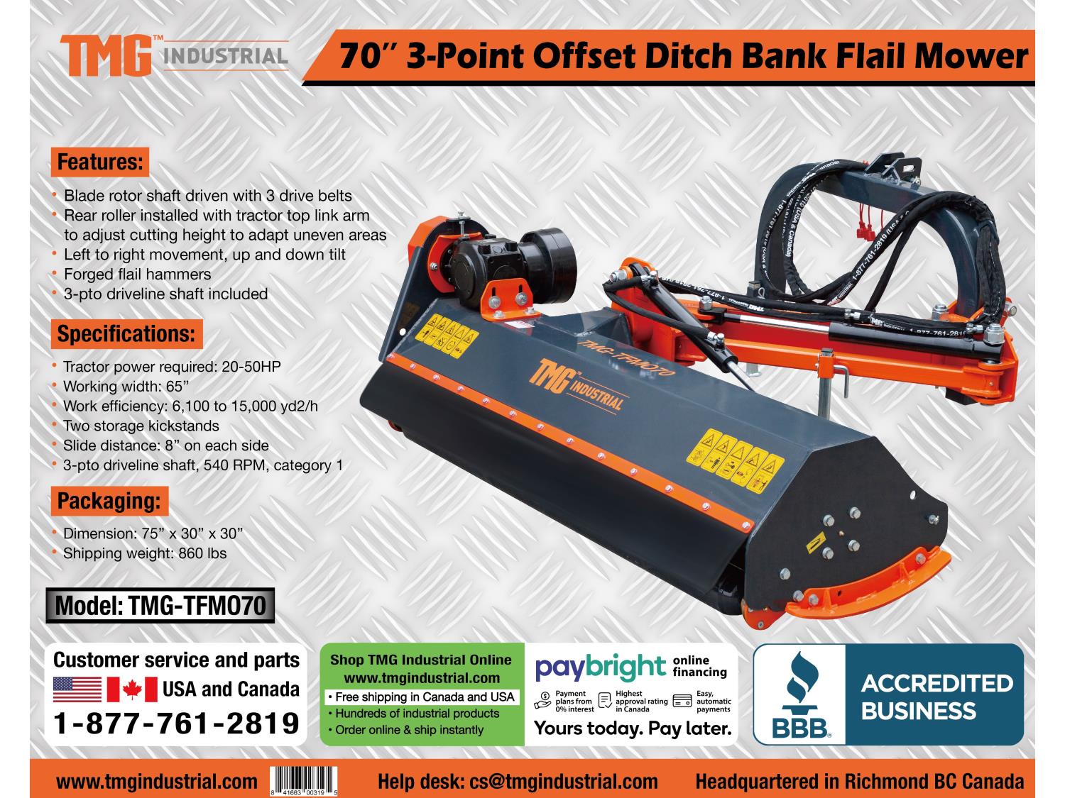 262 TMG Industrial TFMO70 70 Inch Offset Ditch Bank Flail Mower (Unused)