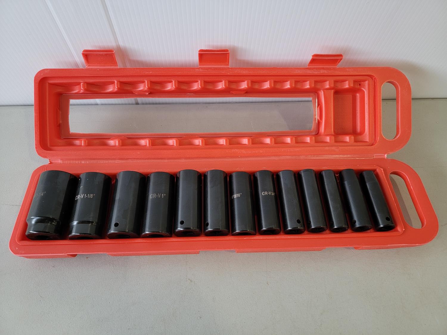 1475 13 Piece 1/2 Inch Drive 6 PT SAE Deep Impact Socket Set (Unused)