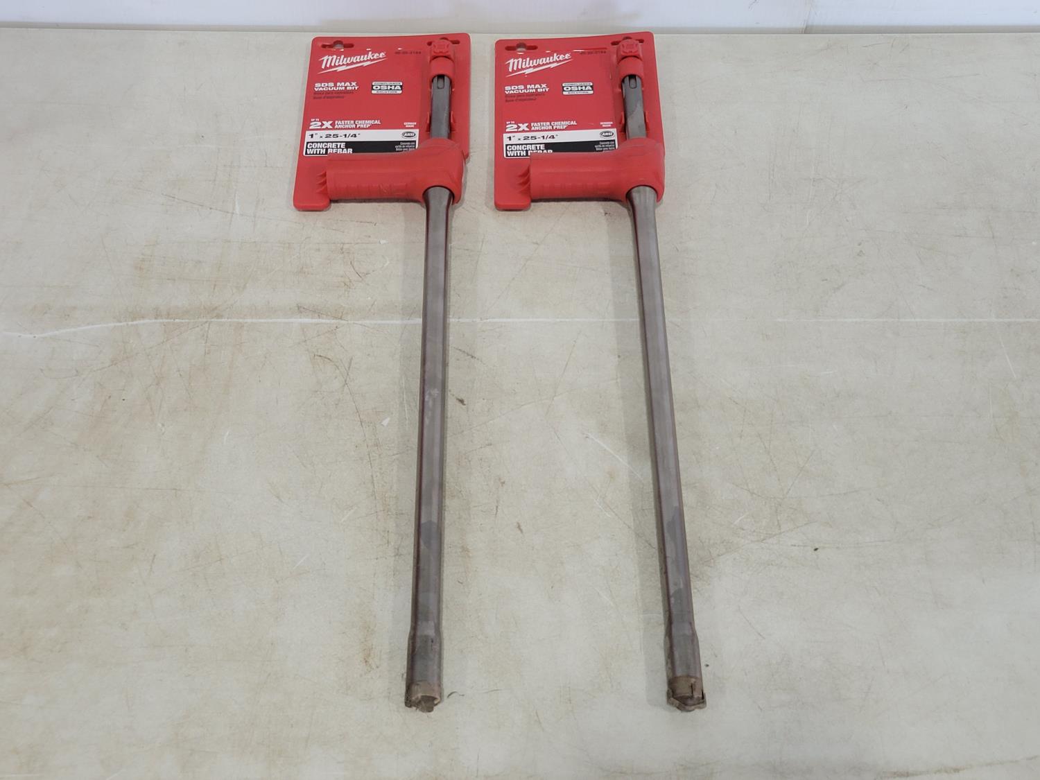1542 (2) Milwaukee 1 Inch X 25-1/4 Inch SDS Max Vacuum Bits (Unused)