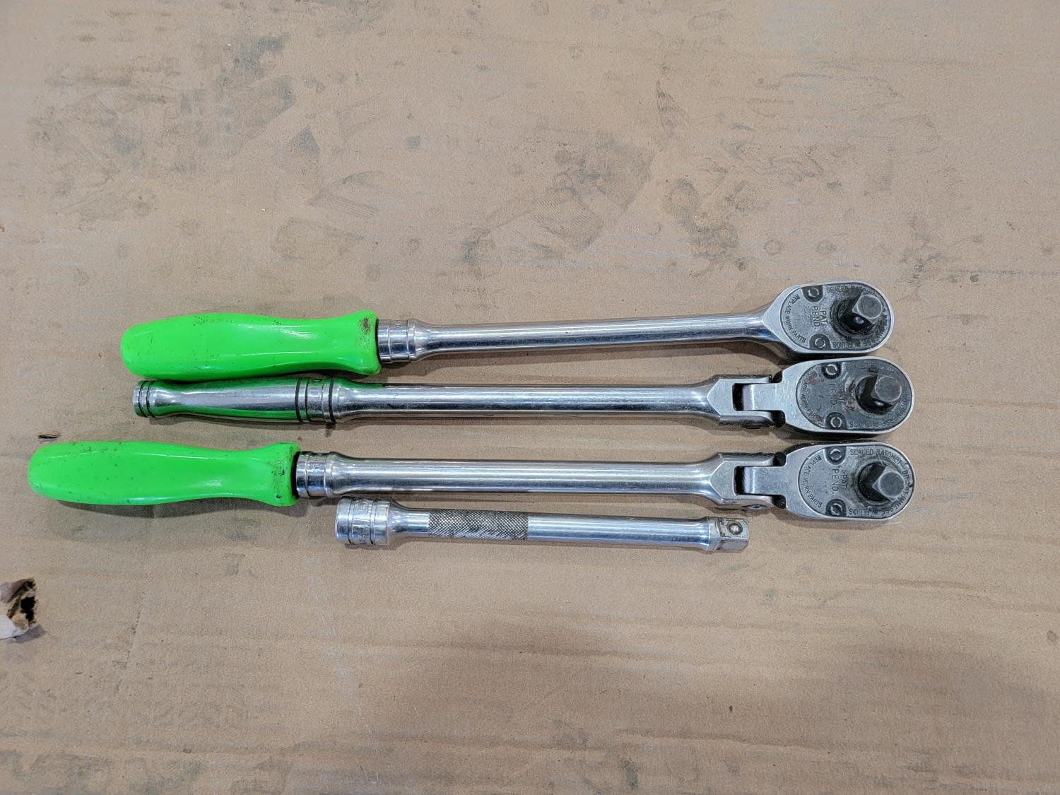 1567 (3) Snap-On 3/8 Inch Drive Ratchets and (1) Extension