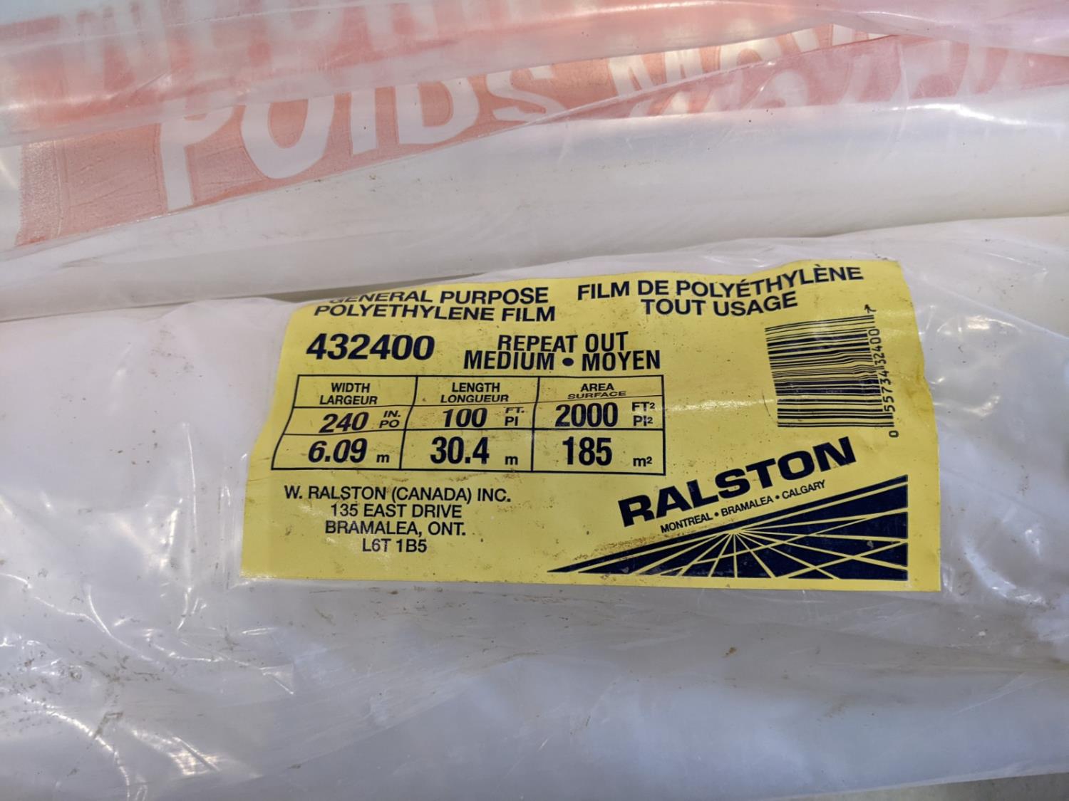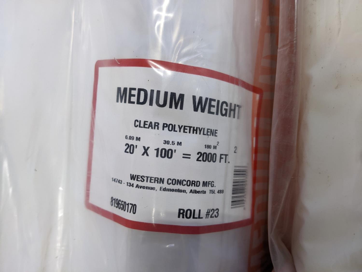 1094 (5) Rolls of 20 Ft X 100 Ft Medium Weight Clear Poly (Unused)