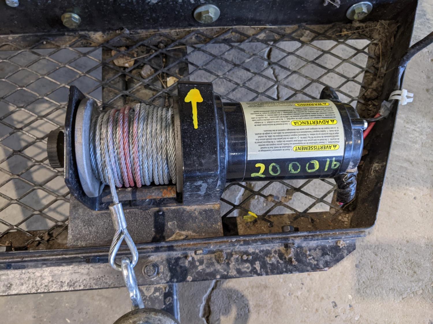 2000 lb Trakker winch, 12 V battery, 18x8.50-8 tires, 1-7/8 inch trailer coupler