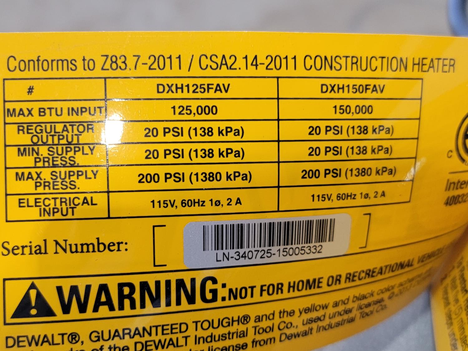 1074 Dewalt 150,000 BTU Propane Construction Heater