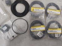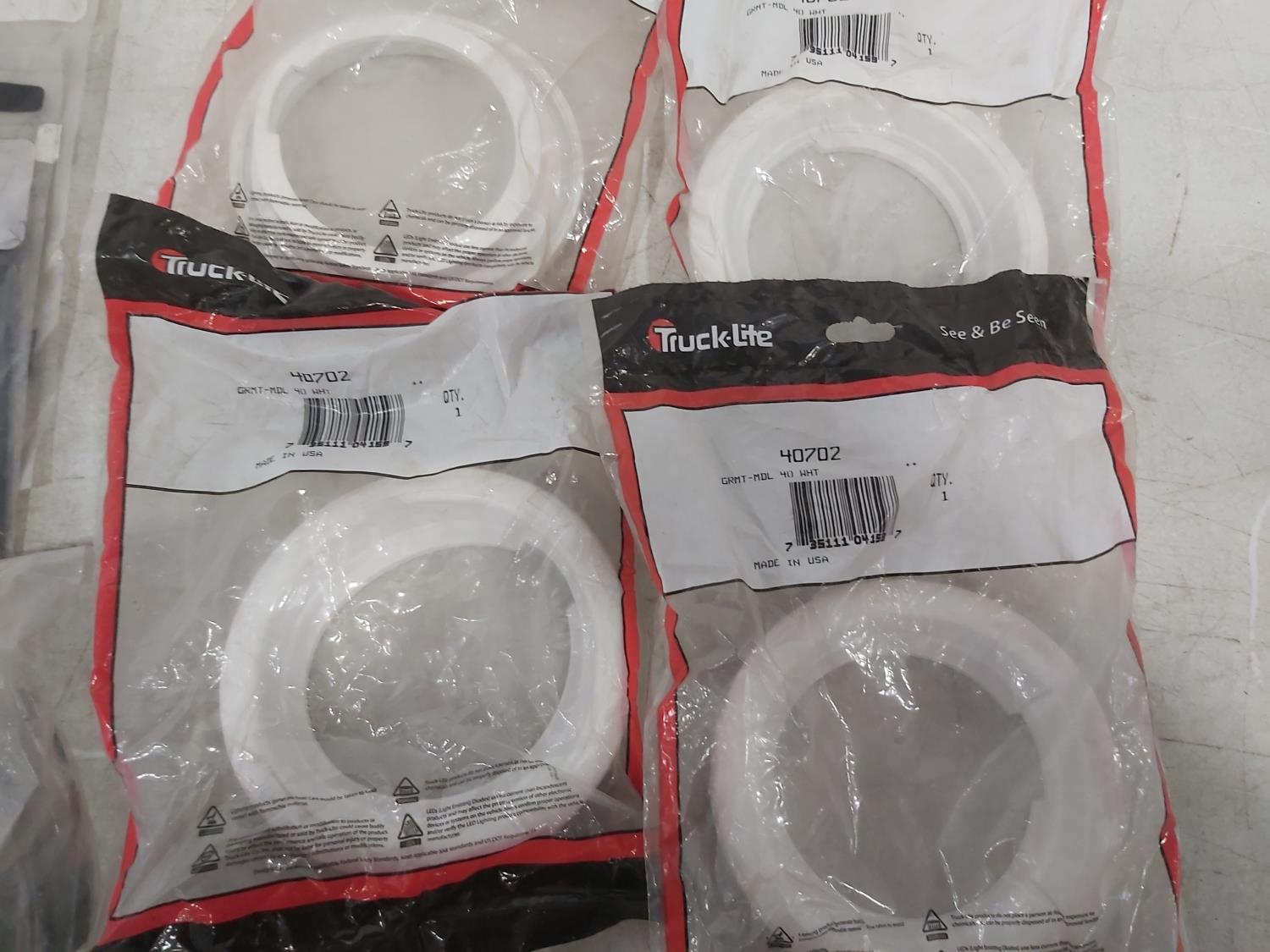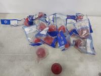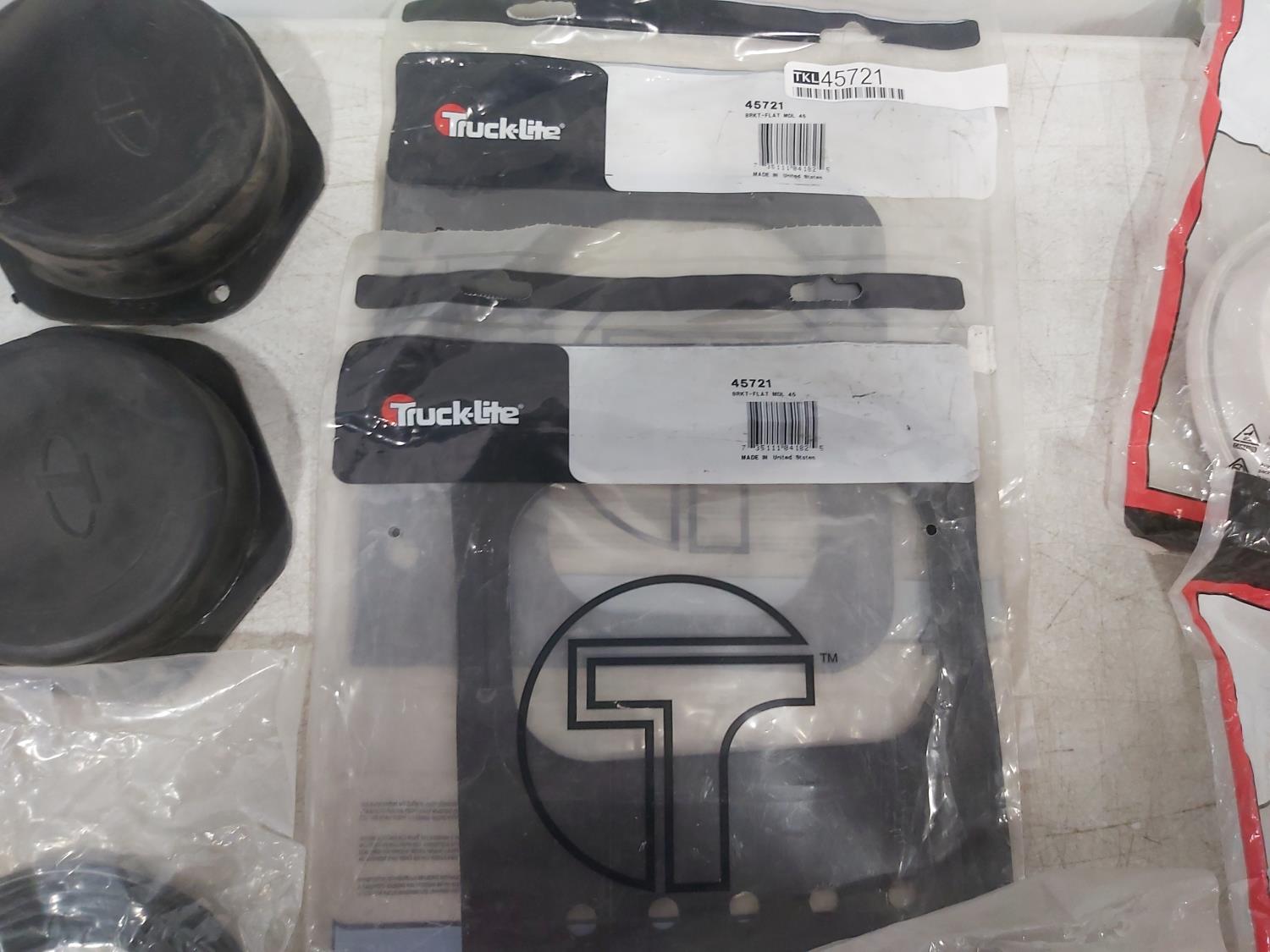 (5) 8 inch dome lenses, (2) 6-1/2 inch dome lenses, 5 inch dome lenses, 15 ft wiring harness assembly, miscellaneous electrical fittings, qty of 8 inch and 2-1/4 inch red lens covers