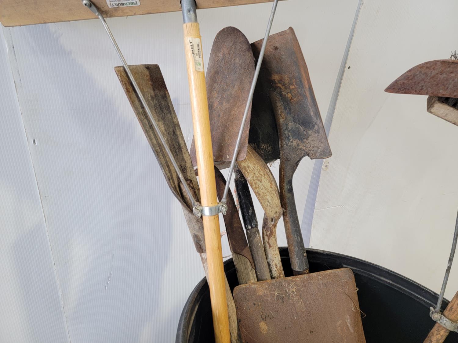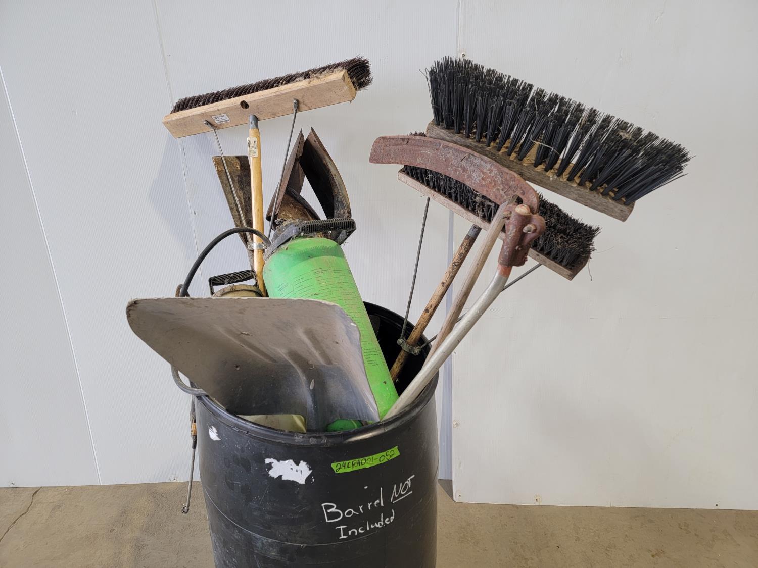 Shovels, hoe, brooms, scythe, ice chipper, pressure sprayer