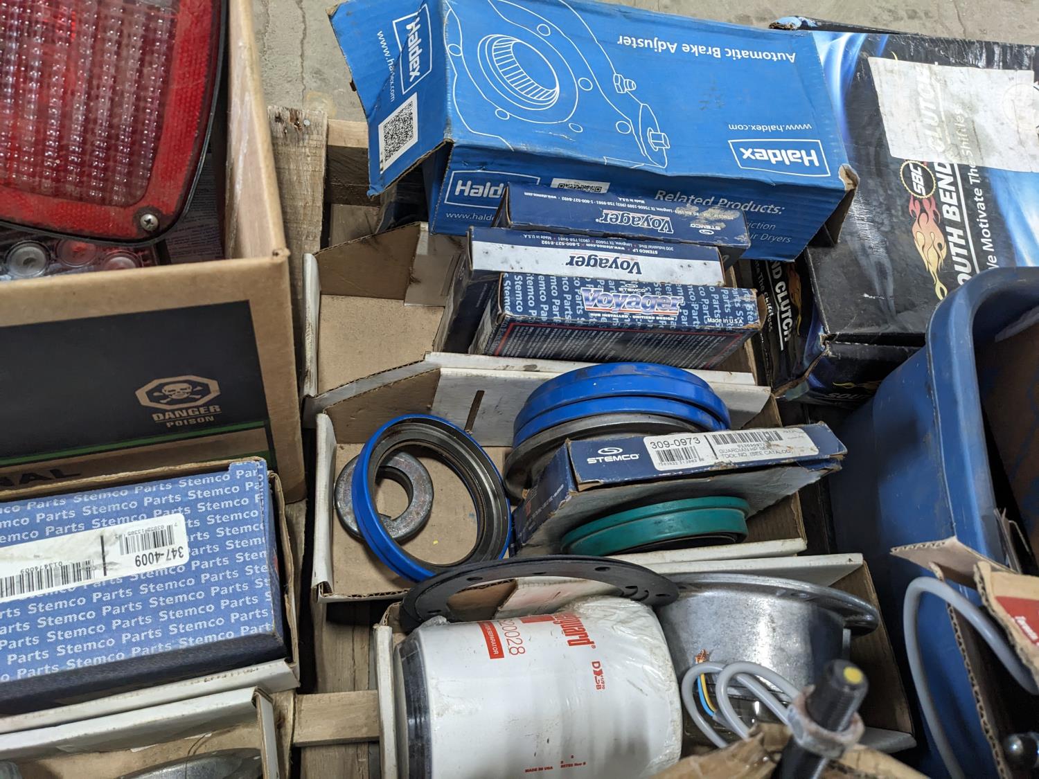 lights, hubs, hub caps, filters, seals, slack adjuster
