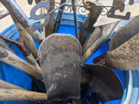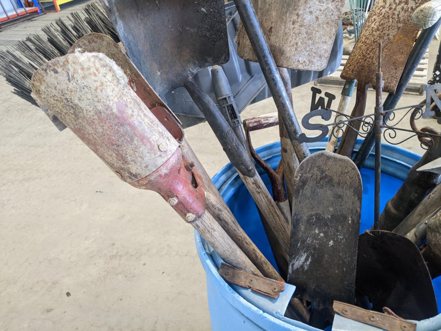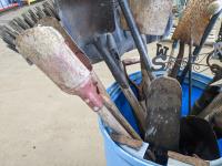 Shovels, brooms, rakes, pitchfork, post hole digger